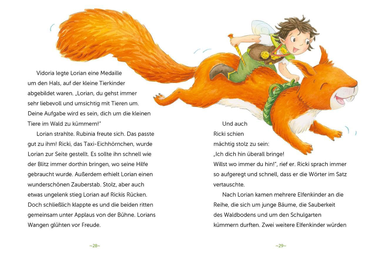 Rubinia freut sich auf ihren Zauberstab und ihre Aufgabe im Wald. Aber als einzige Elfe erhält sie nur ein Amulett mit einem roten Stein. Und sie soll für Harmonie sorgen – Ha… was? Doch auf einmal herrscht Streit im Wald und der rote Stein funkelt auf. Rubinia spürt, dass nur sie helfen kann …