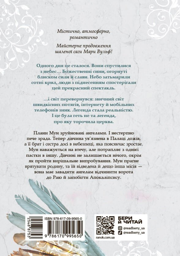 Плани Мун зруйновані ангелами. І нестерпно пече зрада. Тепер вона ув’язнена в Палаці дожів, а її брат і сестра досі в небезпеці, яка повсякчас зростає. Дівчина наважується на втечу, але потрапляє з однієї пастки в іншу. Мун не залишається нічого, окрім як пройти вирішальне випробування. Вона прагне врятувати родину, та їй відведена й дещо інша місія — завадити відчинити ворота до Раю й запобігти Апокаліпсису.