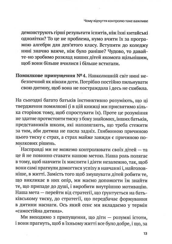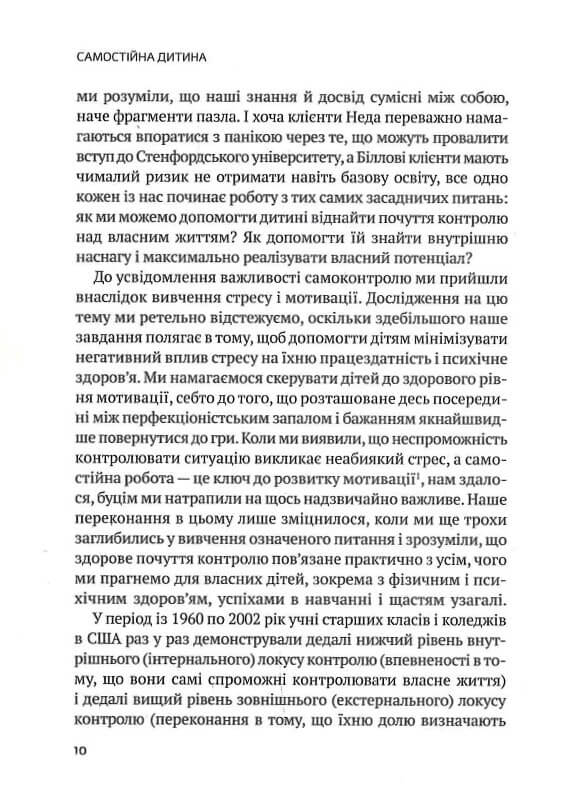 Надто любите свою дитину й тому не сварите її через домашку? Ваша дитина має проблеми з навчанням, синдром дефіциту уваги, страждає на гіперактивність або розлади аутистичного спектру? Намагаєтеся навчити чадо самоконтролю, але марно? Добре, що є ця книжка, бо ви мали б багато клопоту та дитячих сліз! Автори розповідають, як батьки можуть допомогти своїм дітям уникнути стресу й не опустити руки. Їхні поради допоможуть дитині стати самостійною та підійти до межі дорослого життя (перед вступом до коледжу чи університету) з багажем необхідних знань та навичок. Усі історії, наведені в цій книжці, цілком реальні. Це історії дітей, батьків і педагогів, з якими авторам доводилося працювати протягом минулих років. Застосування наведених у книжці методик допоможе вашій дитині навчитися самостійності без істерик, ультиматумів та батьківського пресингу.