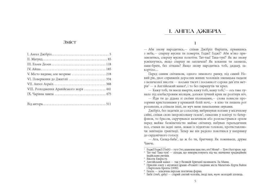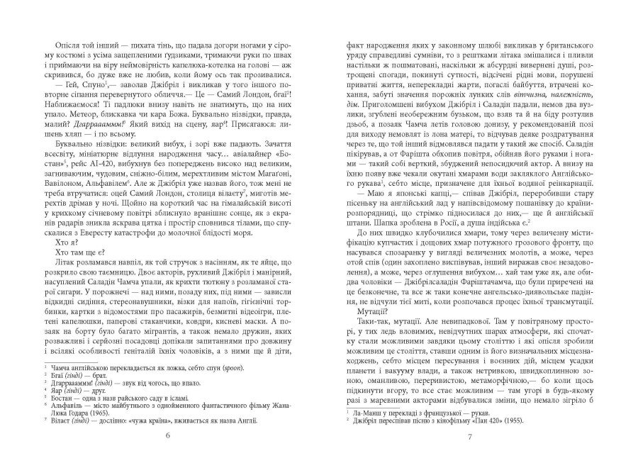 «Сатанинські вірші» — блискучий зразок роману, написаного в жанрі магічного реалізму. У книзі вигадливо переплетено реальні події та неймовірні метаморфози головних героїв, один з яких перетворюється на диявола, а другий — на ангела. Обидва вони перебувають у болісних пошуках сенсу буття, і кожен проходить свій непростий шлях усвідомлення свого коріння.
