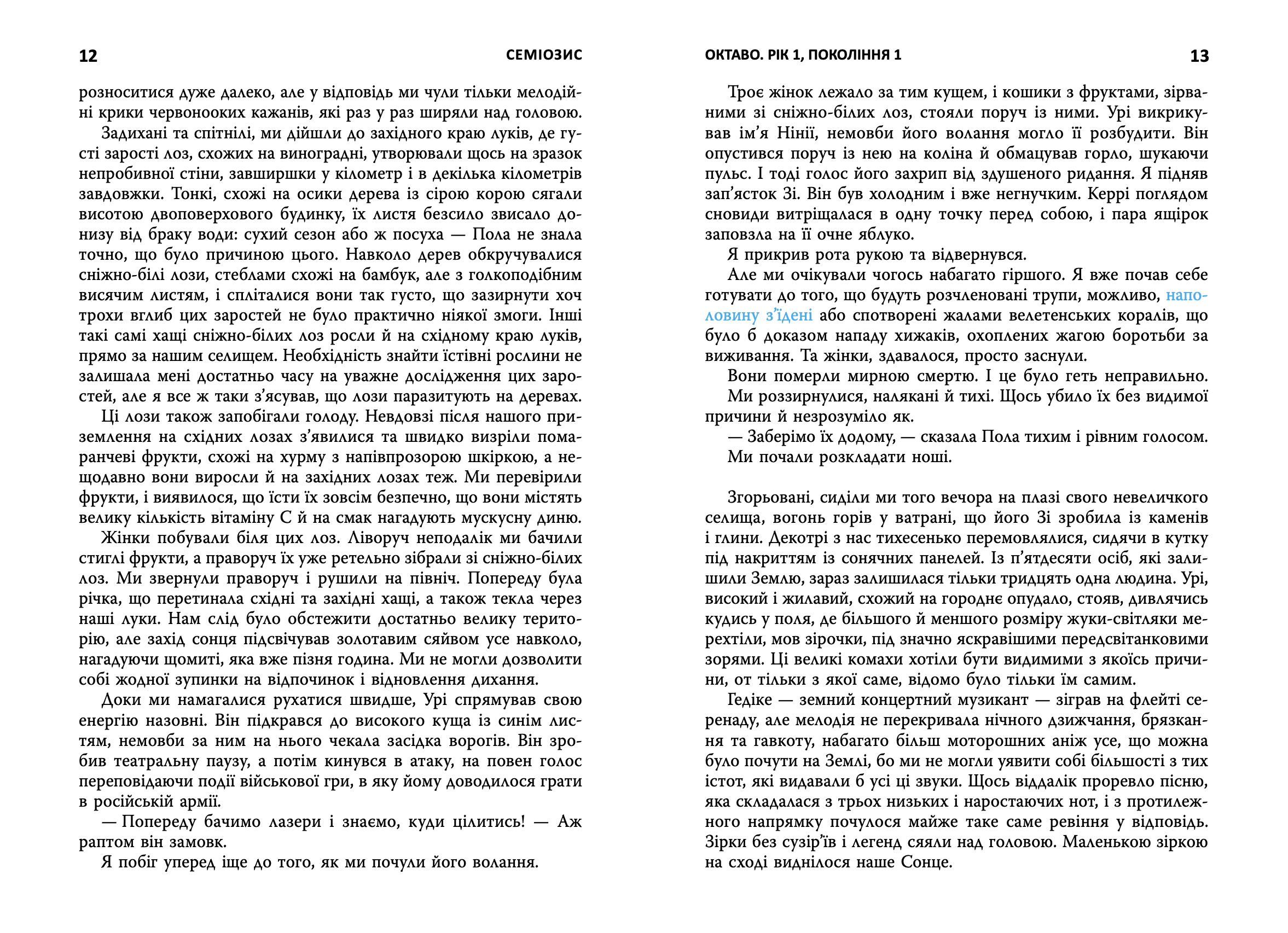 «Семіозис» — це незвична науково-фантастична сага про співіснування, конфлікт і взаєморозуміння між людьми та розумною формою життя, що походить із царства рослин. Сью Бьорк створює глибоку алегорію про колонізацію, екологію, мову і владу, розгортаючи події на далекій планеті, де кожне життя — частина великої системи знаків, впливів і адаптацій.