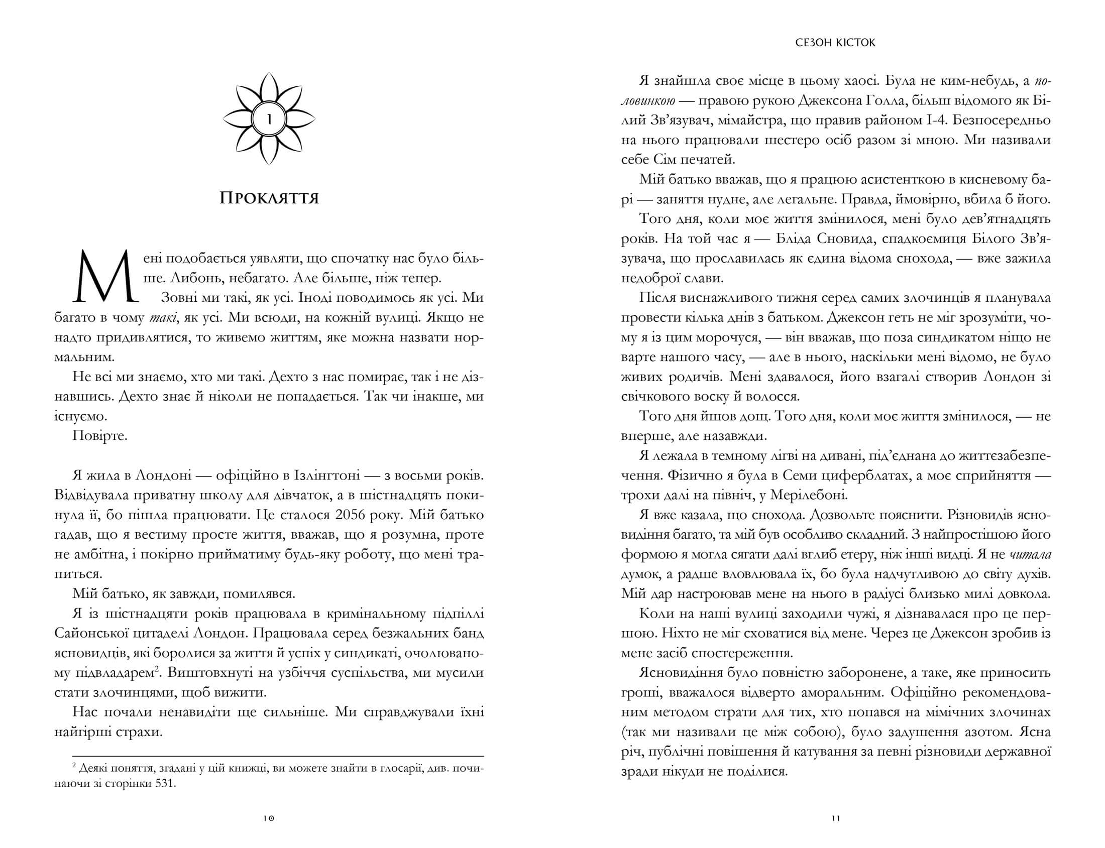 Пейдж Магоні посідає високе становище у злочинному світі Лондона. Вона — права рука безжального Білого Зв’язувача — снохода, представниця рідкісного та грізного різновиду ясновидців. За сайонським законодавством вона скоює зраду, просто дихаючи.