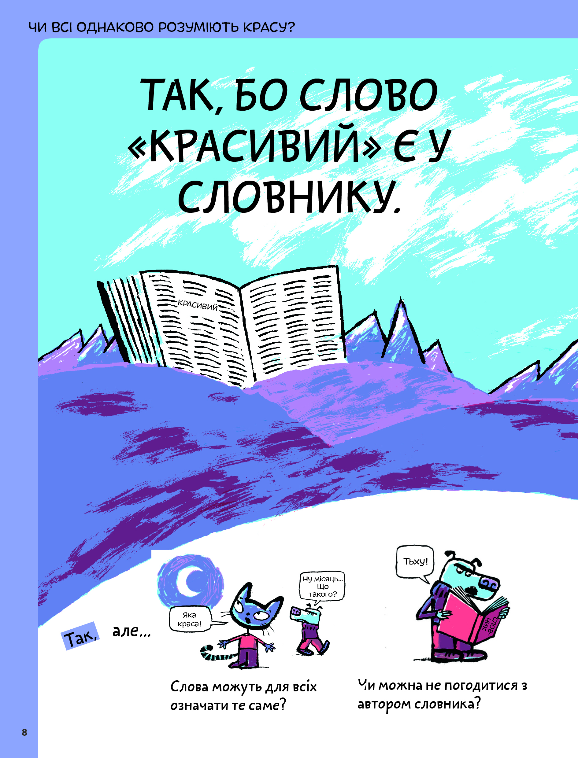 Ця книжка не лише вчить розуміти мистецтво, але й стимулює творчі пориви в дитині, відкриваючи перед нею можливості для самовираження. Вона показує, що кожен може бути художником, а краса — це не тільки вишукані картини та скульптури, але й те, як ми бачимо світ і як у ньому творимо.