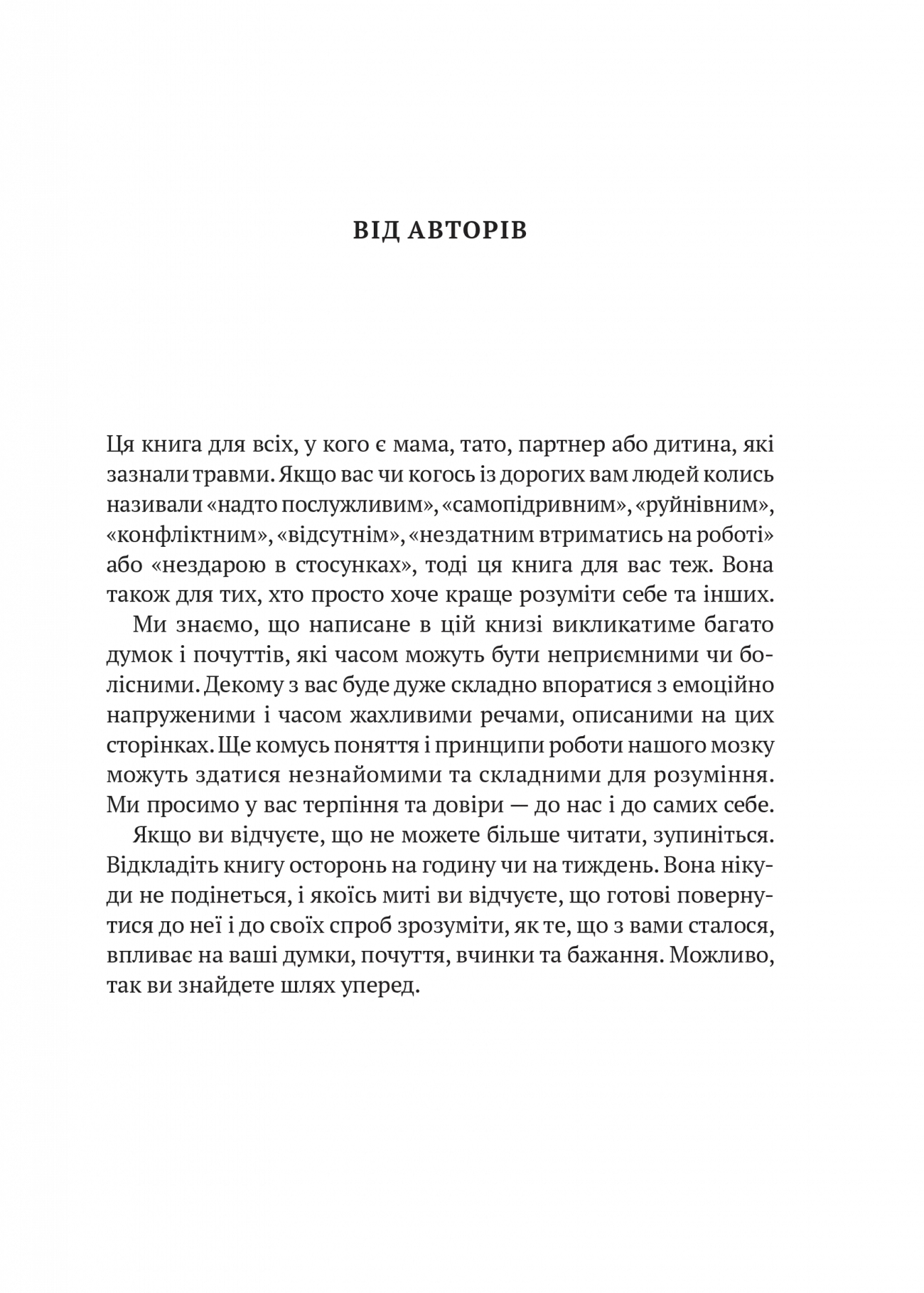 Від самореалізації й мрії, до якої вже, здавалось би, залишилось лише простягнути руку, зупиняє провалля смутку, сліз і минулих поганих досвідів, що виструнчили вчиняти саме так. Ми знаємо, що книжка з психології не зцілить ваших травм. Втім, у «Що з тобою сталося?» Опра Вінфрі й Брюс Перрі пропонують нову призму погляду на хворобливий досвід. Такий підхід допоможе усвідомити весь пройдений життєвий шлях по-новому й перетворити біль на знання, що є ключем до перебудови себе.