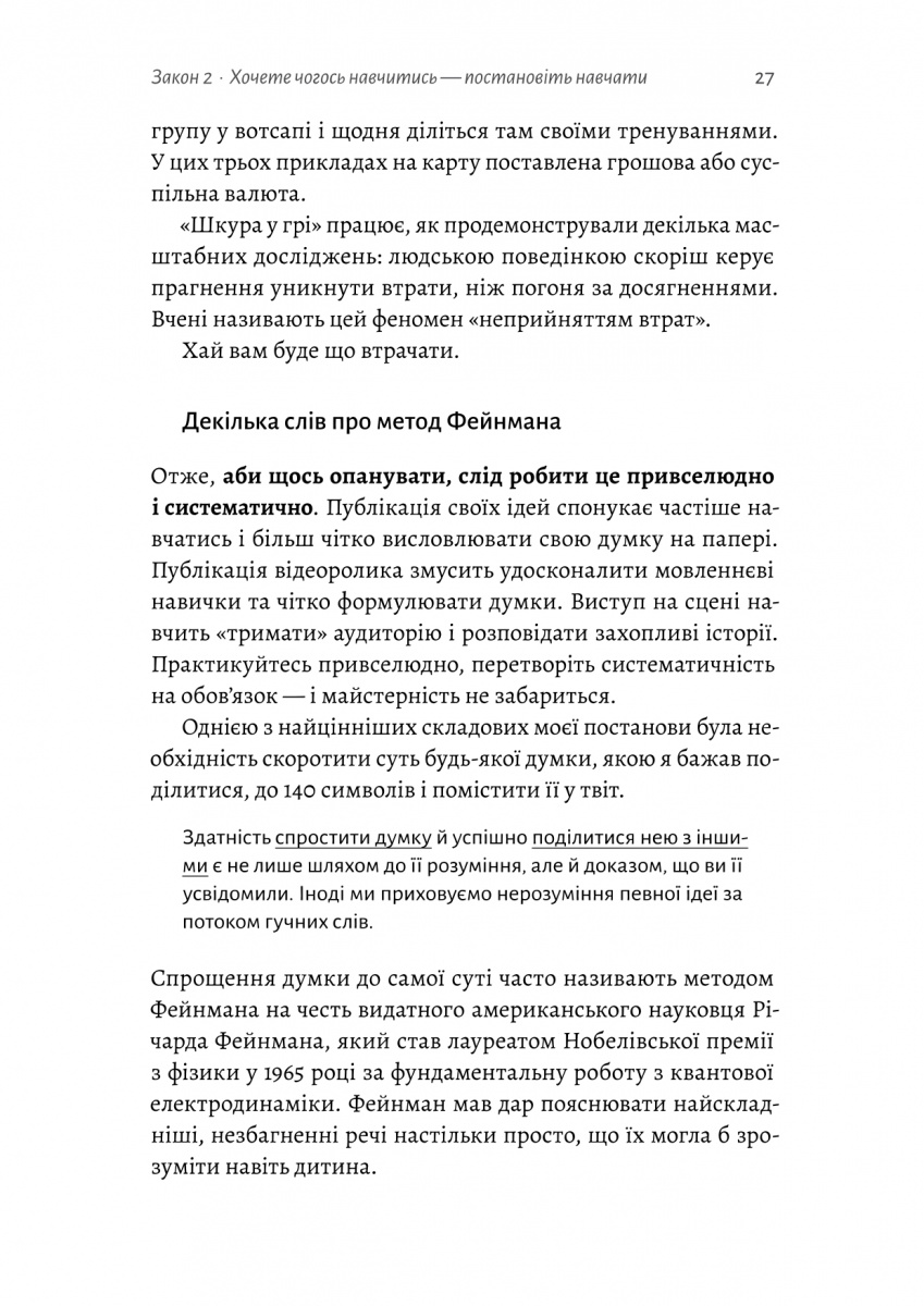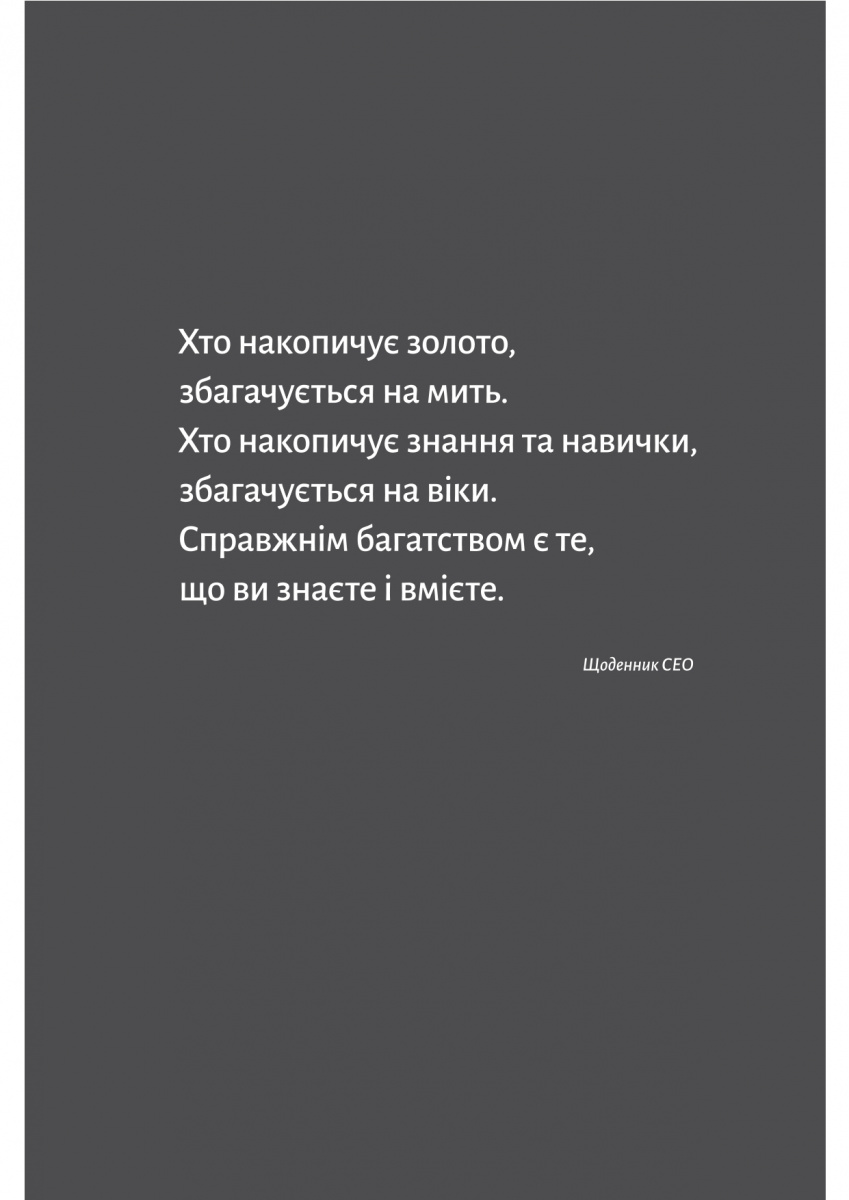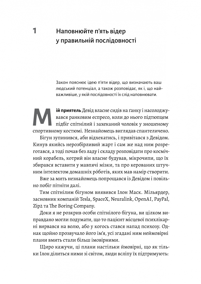 В основі усіх успіхів і невдач, із якими довелося зіткнутися Стівену Бартлетту, як на власному підприємницькому шляху, так і в тисячах інтерв’ю, проведених для популярного подкасту «Щоденник СЕО» (The Diary Of A CEO), лежить набір принципів, які забезпечують досконалість. Ці фундаментальні закони можуть допомогти кожному, хто хоче побудувати щось велике або стати кимось великим, адже вони ґрунтуються на психології, поведінковій науці, особистому досвіді та досвіді найуспішніших підприємців, артистів, художників, письменників і спортсменів з усього світу. Ці закони пройшли випробування часом і допоможуть кожному, незалежно від сфери діяльності, керувати власним життям і розкривати прихований потенціал. Вони — секретний соус і карта подорожі на шляху до дивовижного успіху.