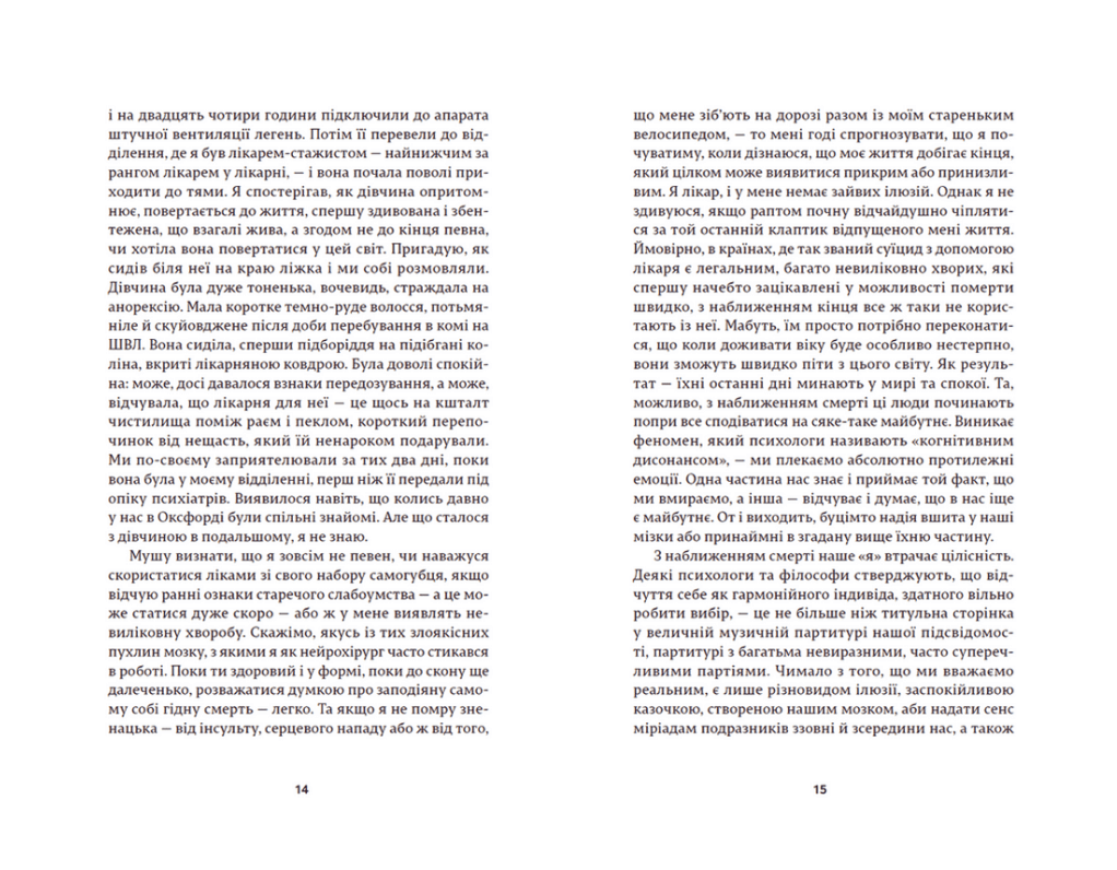 Завершуючи свою майже сорокарічну лікарську кар’єру, автор бестселера «Історії про життя, смерть і нейрохірургію» розмірковує про сенс людського існування, про суть праці лікаря, труднощі професії й про те, чим може обернутися відчайдушне бажання продовжити пацієнтові життя за всяку ціну.