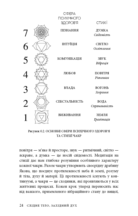 Анодея Джудіт, відома просвітителька, поєднує західні психологію та науку зі східною духовністю, створюючи переконливу інтерпретацію системи чакр для сучасних людей у всьому світі. Спираючись на юнгіанську психотерапію, соматичну терапію, теорії розвитку дитини, метафізику, вона застосовує систему чакр для вирішення сучасних питань, таких як залежність, співзалежність, сімейна динаміка, сексуальність, розширення особистих можливостей тощо. Східну структуру системи чакр у книзі подано як карту, на якій можна накреслити наше західне розуміння індивідуального розвитку. Кожна чакра докладно розглядається в окремому розділі, де описуються її характеристики, досліджуються особливості розвитку від дитинства до зрілості, розглядається вплив травм і життєвого досвіду, а також надаються поради, як зцілити чакру й зберегти життєвий баланс.