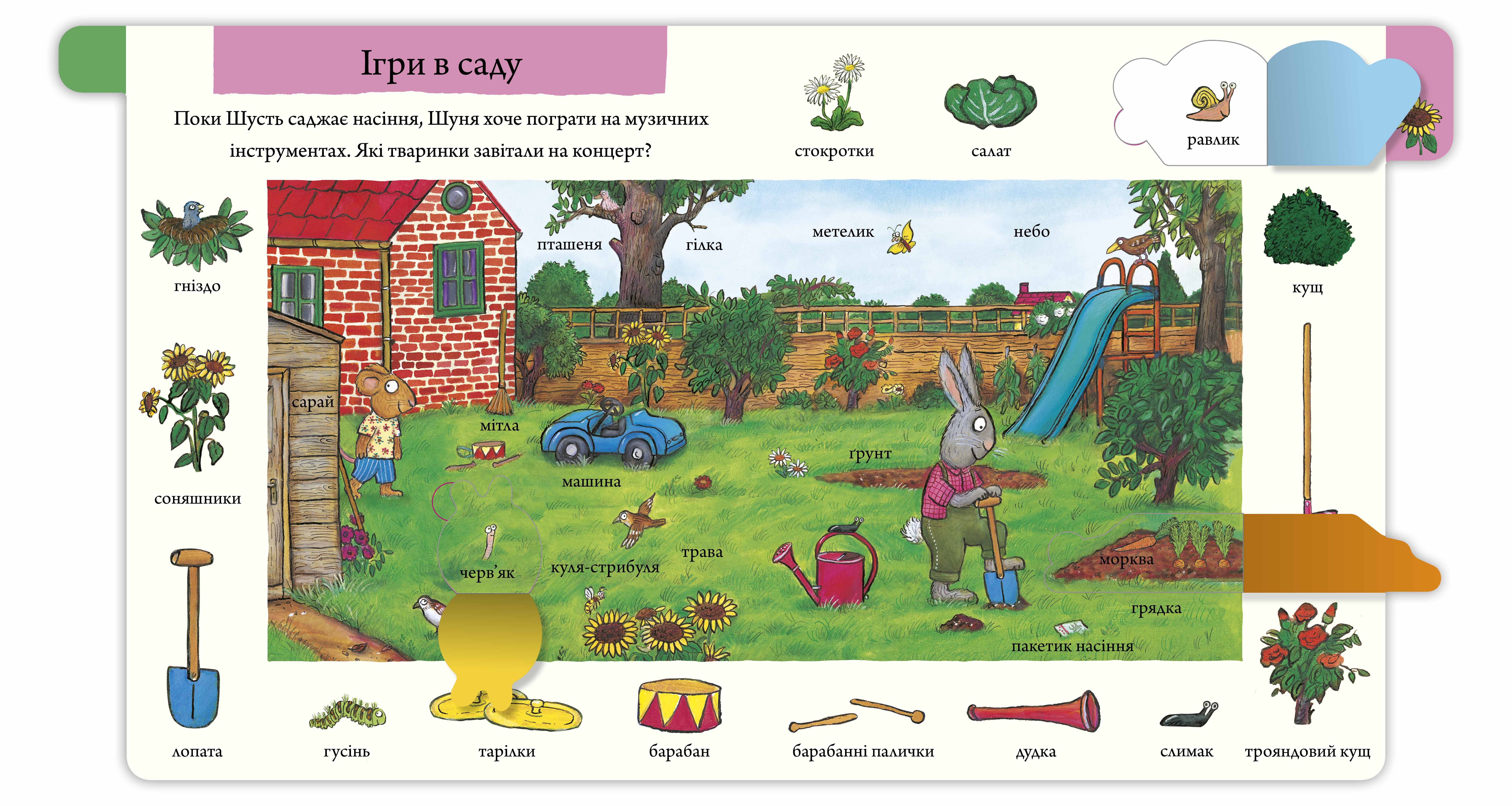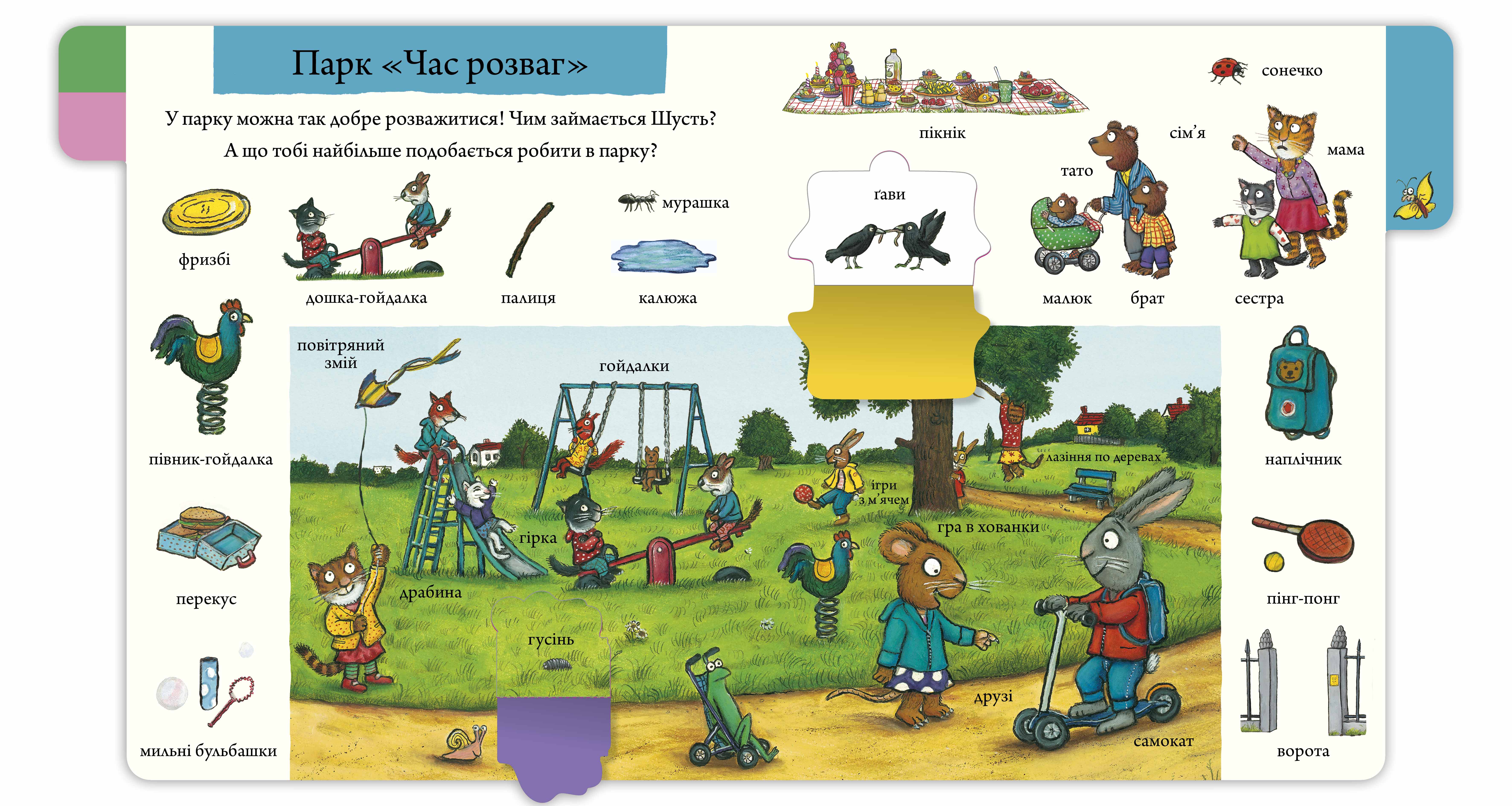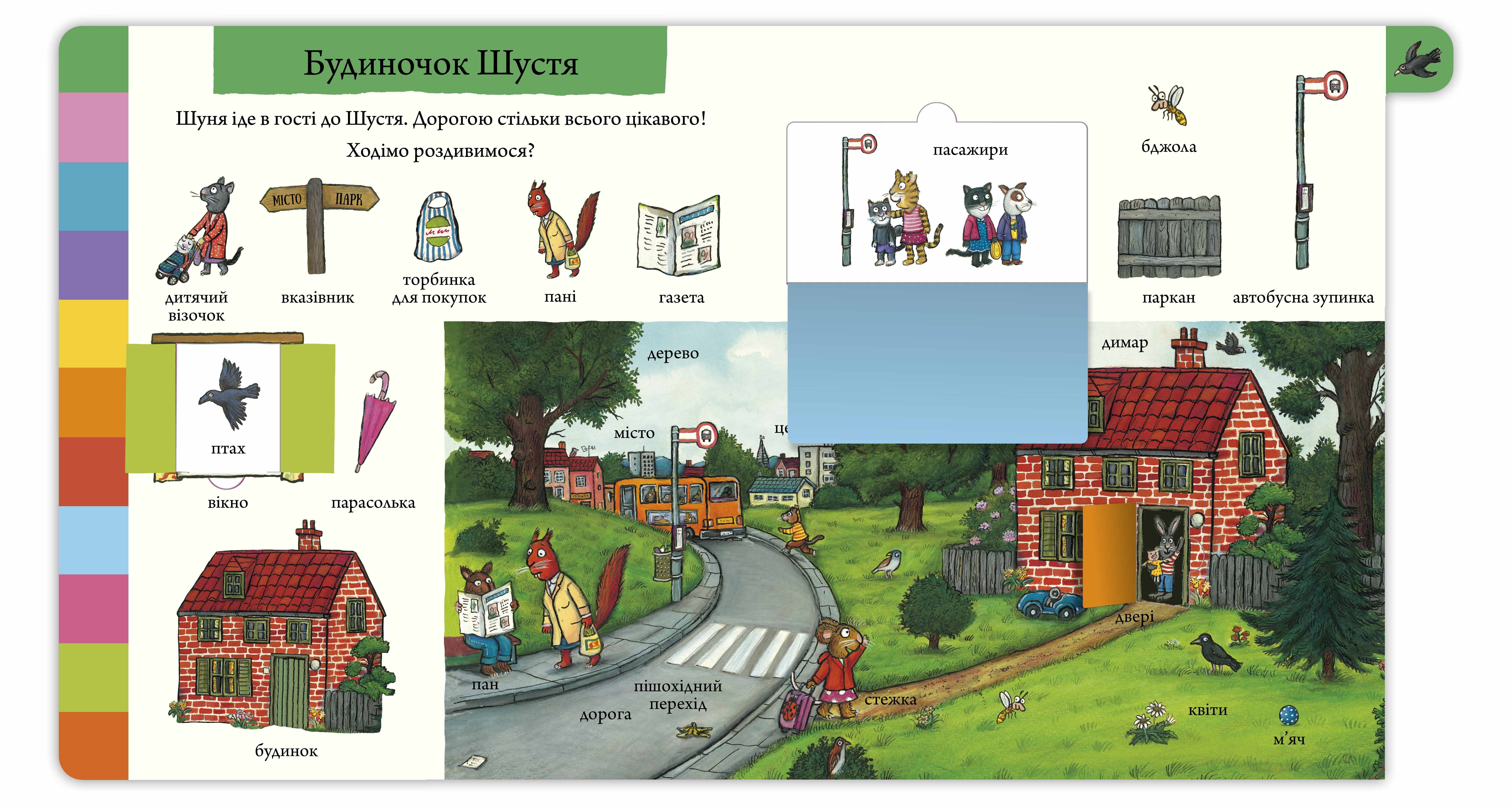 Нова книжка-пошуківка для найменших стане чудовим доповненням колекції. Вона розкаже все про дозвілля Шустя та Шуні й про їхній побут, а також запропонує нові теми для обговорення. А весела гра в пошук зображень допоможе малюкові більше дізнатися про навколишній світ.