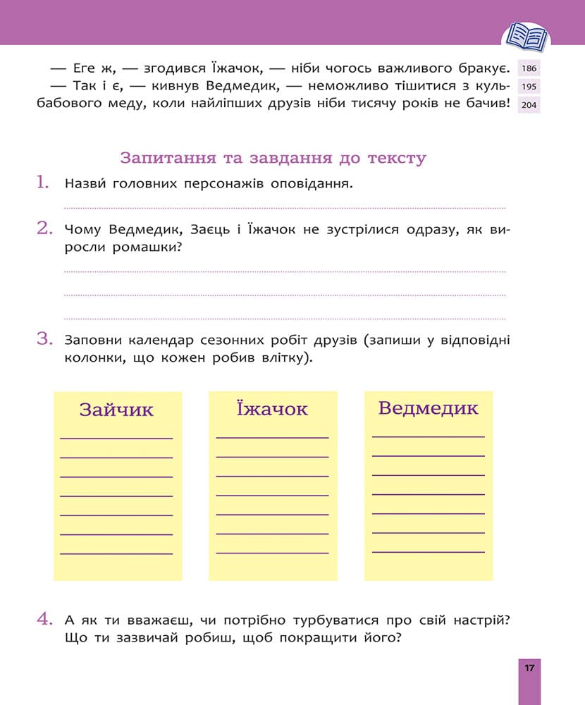 Також у посібнику містяться вправи на глибоке розуміння змісту, аналіз, виявлення прихованих сенсів, встановлення причинно-наслідкових зв’язків та розвиток мовленнєвої творчості.
