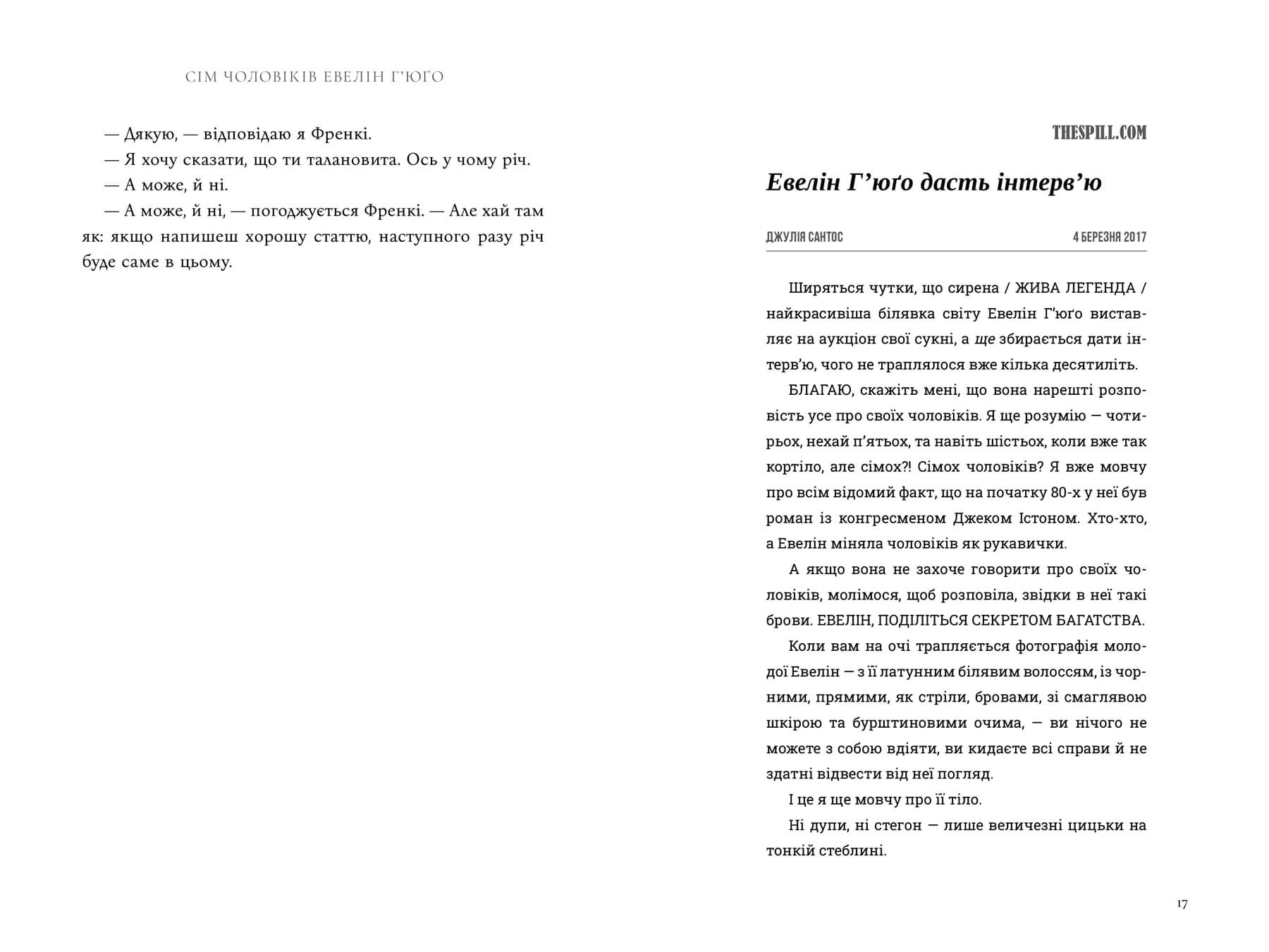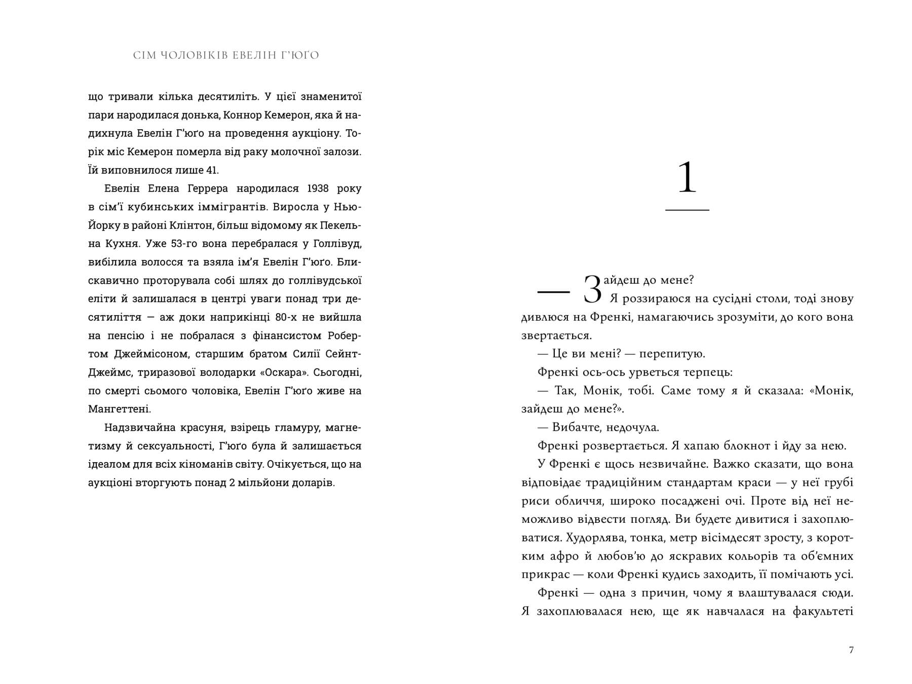 Евелін Г’юґо, у минулому голлівудська ікона кіно, нарешті готова пролити світло на своє гламурне і скандальне життя. Але коли задля цієї мети вона обирає нікому невідому репортерку з журналу Монік Грант, це дивує всіх, а найбільше — саму Монік. Чому вона? Чому зараз?