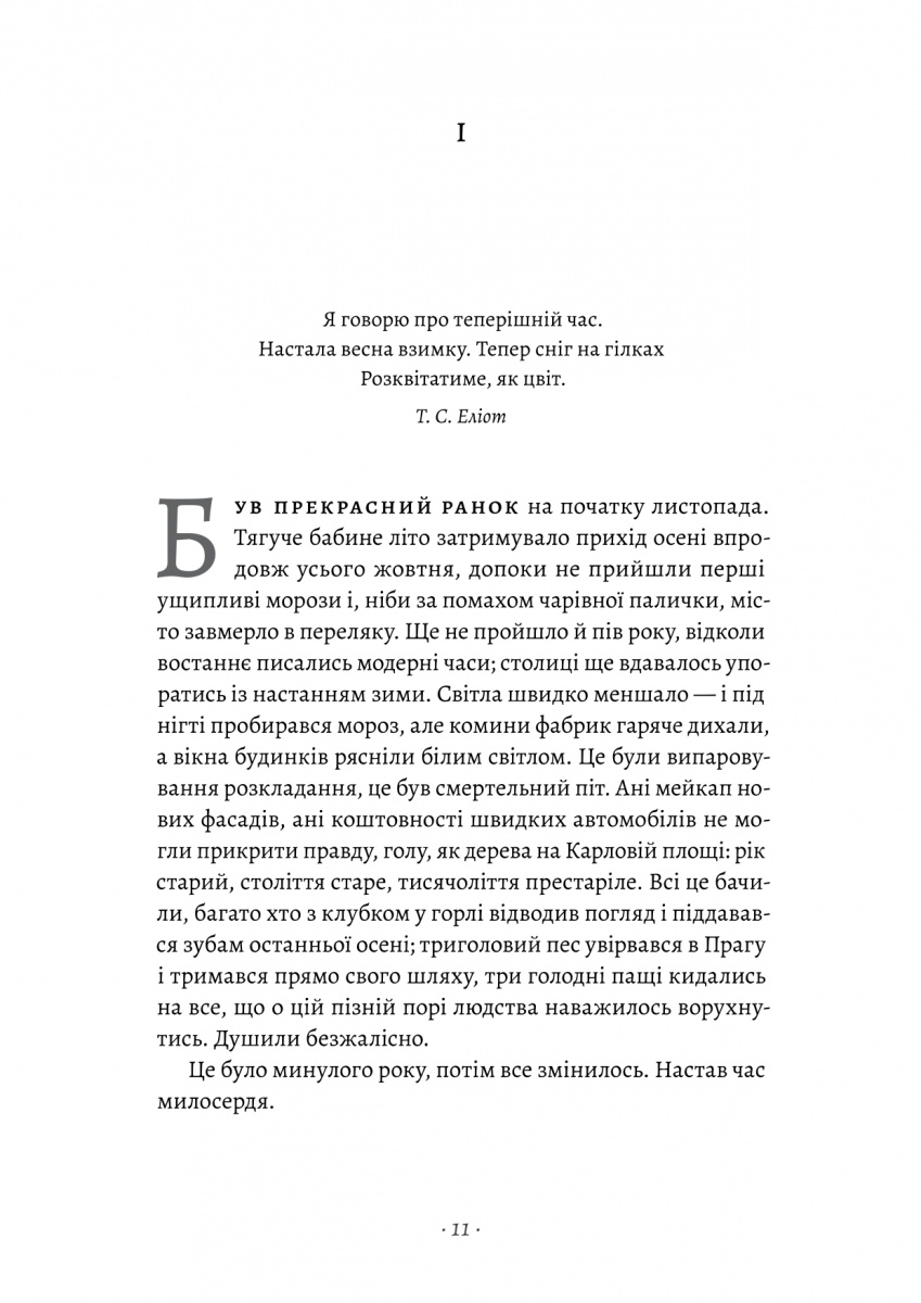 Осінь принесла в Прагу не лише холод і паморозь, а й ретельно спланований задум, що пов’язував жахливі вбивства, розкидані по старовинних костелах міста, із долею невдахи, на ім'я К. — тіні, вигнанця без роботи й майбутнього, але з пристрасною любов'ю до міста, яке повільно руйнувалося на його очах. Він жив у сутінках великої історії, що день за днем стирала стару Прагу і замінювала її порожніми й холодними будівлями. Страждання від безсилого споглядання цього занепаду точили його душу, доки на світло не вийшов загадковий лицар, який побачив у К. щось більше, ніж просто жалюгідного спостерігача. Нарешті настав час, коли таємниці, змінюючи свою подобу, повідають правду, яку століттями приховували величні костели, адже пробудився відкривач прихованих істин…
