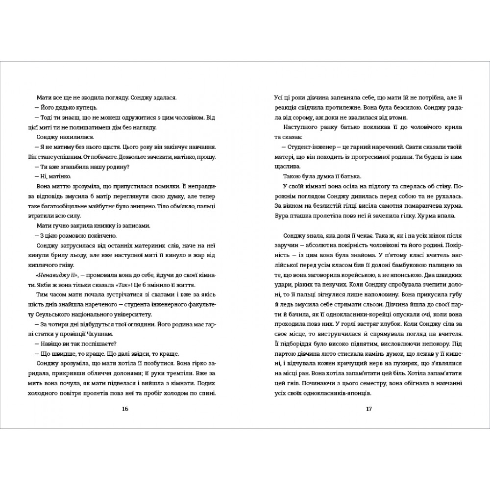 Історія Сонджу охоплює понад два десятиліття. Спочатку дівчина здобуває сучасну освіту в Кореї та уявляє собі безхмарне, вільне життя. Але миттєво її ідеали руйнуються багатовіковою традицією — мати Сонджу організовує їй шлюб із чоловіком, якого та ніколи не зустрічала. Так починається особиста боротьба розумної жінки за пошук свого місця в суспільстві, де домінують чоловіки.