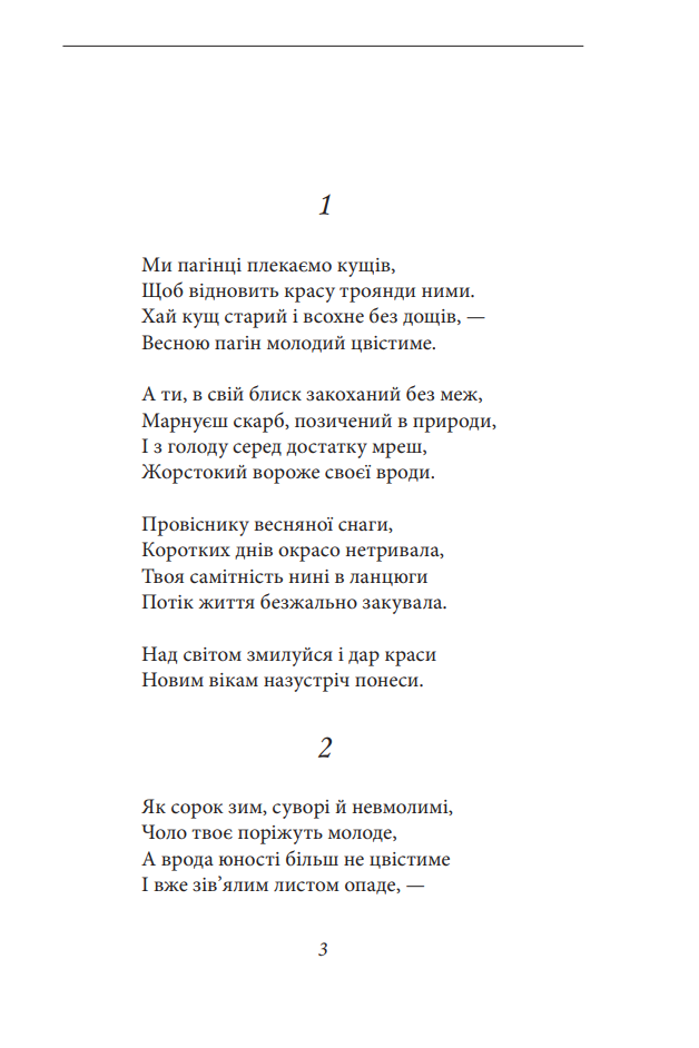 Ім’я англійця Вільяма Шекспіра (1564–1616) незмінно згадується серед імен видатних митців слова всіх часів. Він подарував людству розмаїття драматичних та поетичних творів, які мають незаперечний вплив на світовий літературний процес. У багатому творчому доробку поета «Сонетам» належить особливе місце. У них Шекспір вийшов за межі традиційних тем і поетичних норм, започаткувавши чимало новацій. Зокрема, змінив форму вірша, наповнив його багатим змістом і глибокою думкою, розширив тематику. Водночас цикл шекспірівських сонетів — ще й своєрідний ліричний щоденник, у якому є оповідь і про палку дружбу, яка будить думку й спонукає до творчості, і про пристрасне кохання до «смуглявої леді» — реальної жінки.