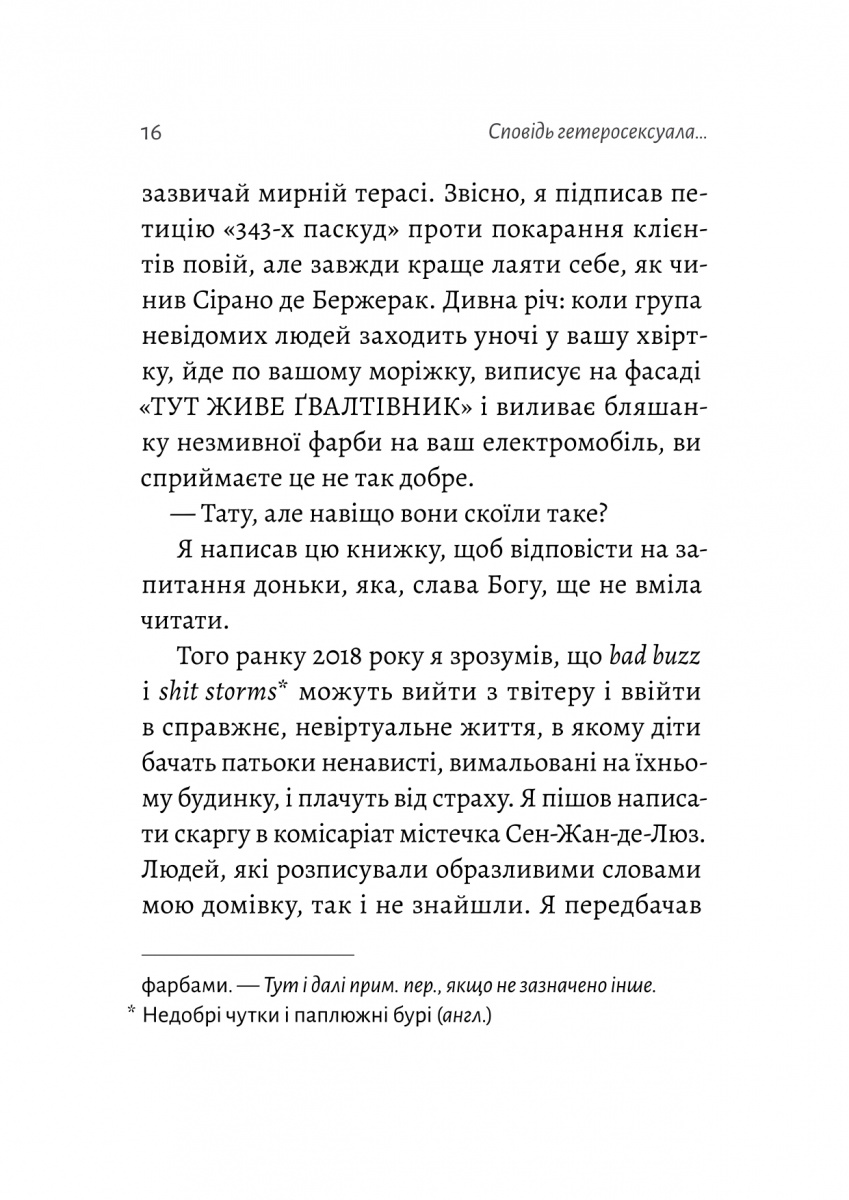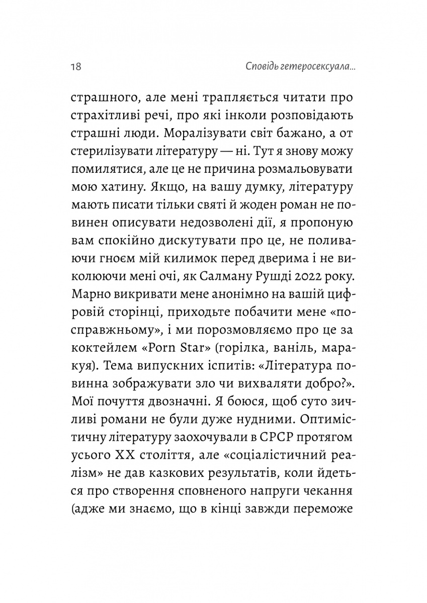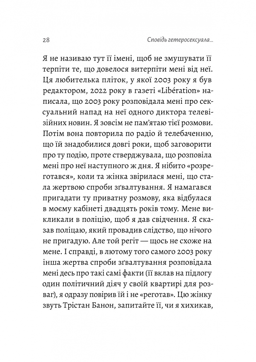 «Сповідь гетеросексуала, який відстав від свого часу» – це спроба зрозуміти себе, своє минуле і світ навколо. З брутальною відвертістю і безжальним гумором Беґбедер зводить рахунки з наркотиками, алкоголем і сексом, розкриваючи особисте ставлення до надмірної політкоректності, фемінізму і претензій «всевідаючих нових пророків». Не церемонячись з тим, що робить його негідником, звинуваченим ледь не у всіх смертних гріхах, і не шкодуючи прагнення до порядності, він завершує свою сповідь зізнанням у коханні до тієї, яку серед моря жінок кожного дня обирає собі за дружину.