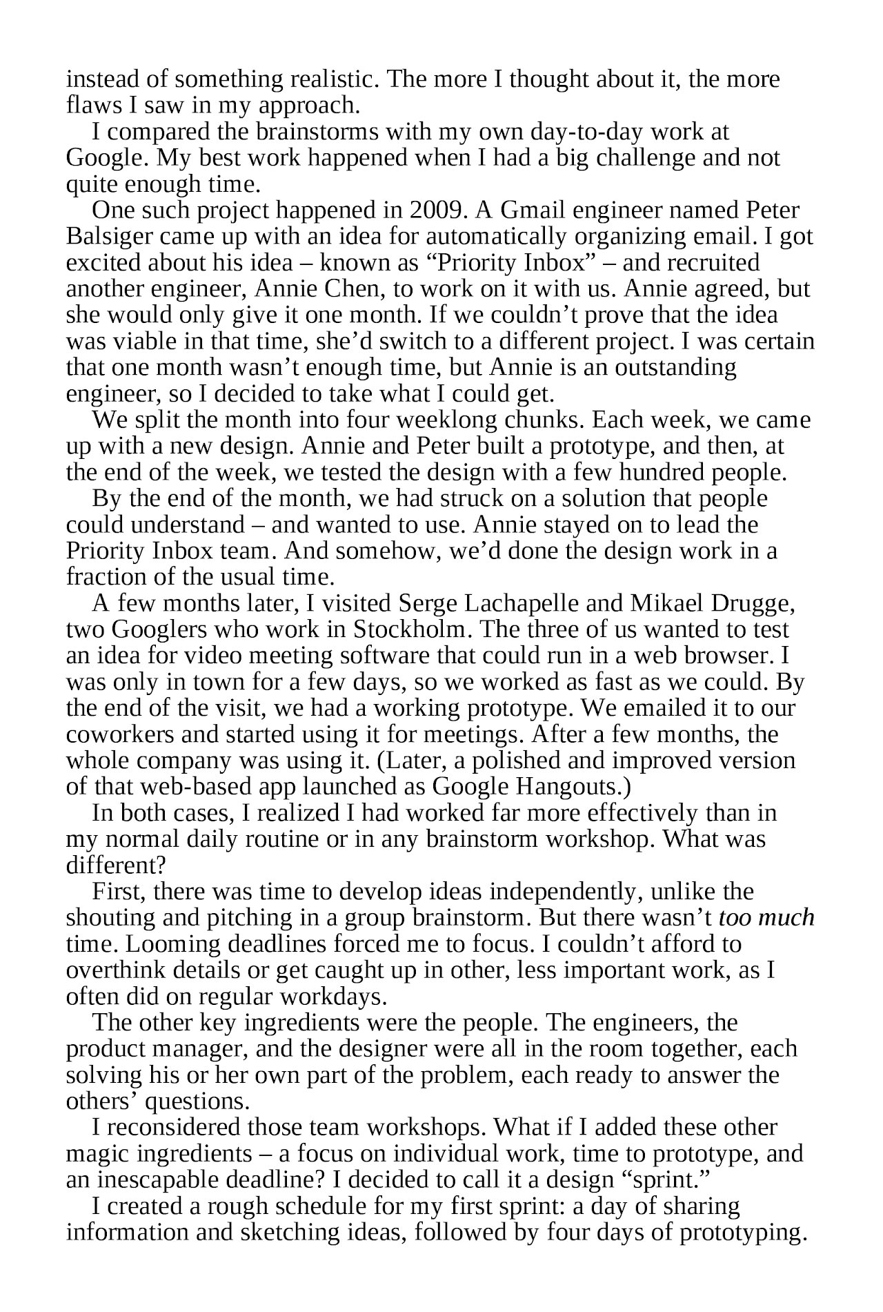 From three partners at Google Ventures, a unique five-day process for solving tough problems, proven at more than a hundred companies. Entrepreneurs and leaders face big questions every day: What’s the most important place to focus your effort, and how do you start? What will your idea look like in real life? How many meetings and discussions does it take before you can be sure you have the right solution? Now there’s a surefire way to answer these important questions: the sprint. Designer Jake Knapp created the five-day process at Google, where sprints were used on everything from Google Search to Google X. He joined Braden Kowitz and John Zeratsky at Google Ventures, and together they have completed more than a hundred sprints with companies in mobile, e-commerce, healthcare, finance, and more. A practical guide to answering critical business questions, Sprint is a book for teams of any size, from small startups to Fortune 100s, from teachers to nonprofits. It’s for anyone with a big opportunity, problem, or idea who needs to get answers today.