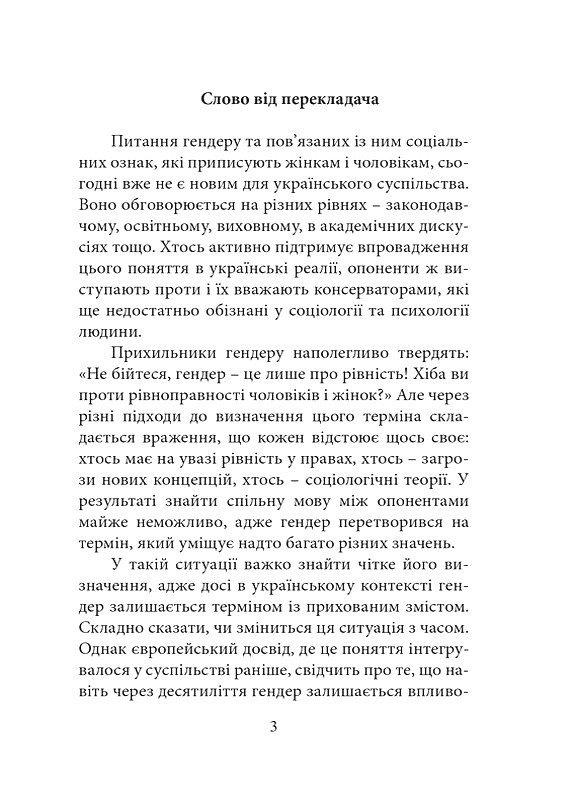 У перекладених текстах подано критичні роздуми щодо феномену гендеру та його впливу на сучасну культуру, суспільство та освіту.