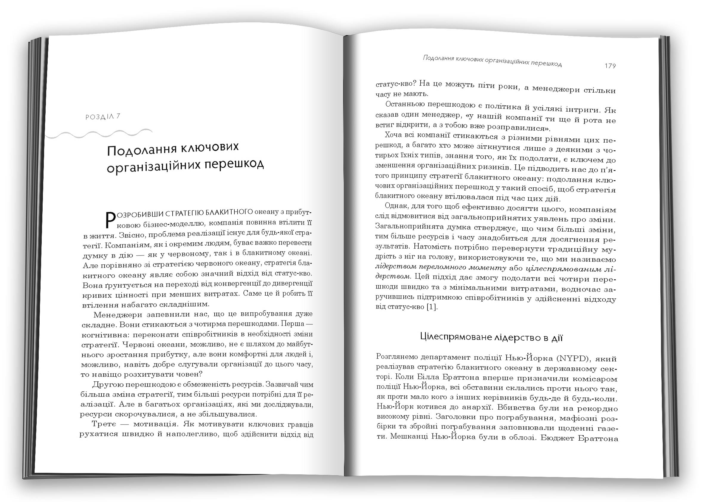У цьому бестселері з багаторічною історією, яким користуються організації та галузі в усьому світі, всесвітньо відомі автори В. Чан Кім та Рене Моборн ставлять під сумнів усе, що ви, як вам здається, знаєте про стратегічний успіх та його вимоги. У визнаній однією з найбільш знакових і впливових книг про стратегії, оновленій "Стратегії блакитного океану" стверджується, що безжальна конкуренція не призводить ні до чого, крім появи криваво-червоного океану суперників, які борються за все зменшуваний пул прибутків. На основі дослідження 150 стратегічних кроків (що охоплюють понад 100 років у 30 галузях) автори стверджують, що довготривалий успіх приходить не від боротьби з конкурентами, а від створення блакитних океанів - нових, невикористаних ринкових просторів, що дозріли для зростання.
