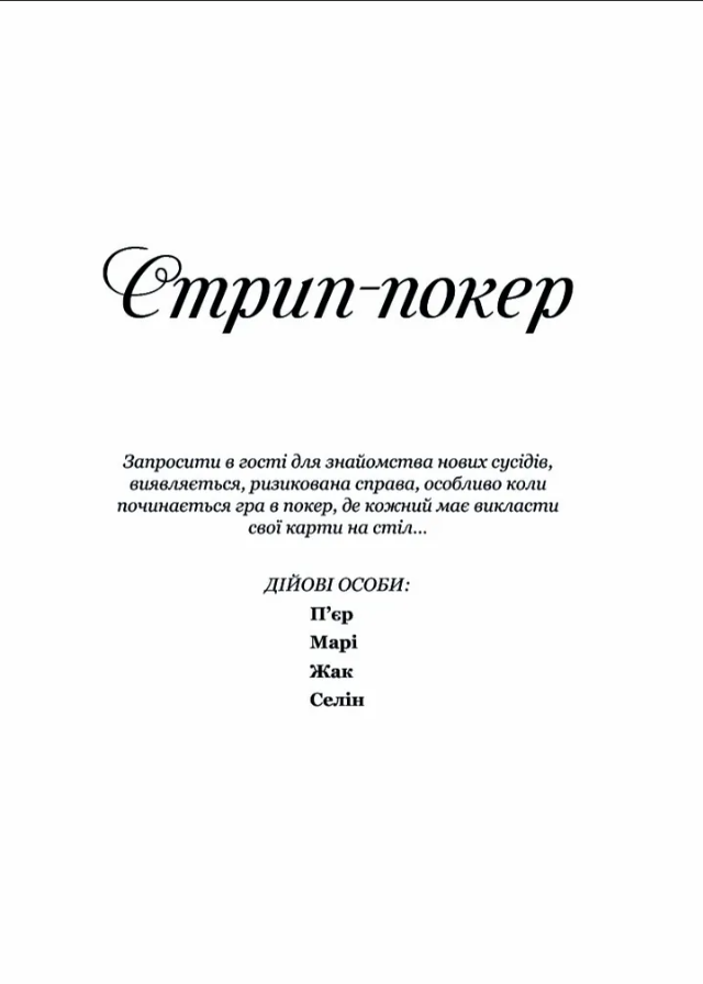 В интернет-магазине Book24 можно купить книгу Стрип-покер та інші п’єси с адресной доставкой по Украине. Наш сервис – это прекрасная возможность сэкономить деньги и время, ведь вам не придется искать необходимое издание в стационарных книжных магазинах. К тому же, мы предлагаем книгу Стрип-покер та інші п’єси недорого. Доступные цены сохраняем за счет того, что напрямую сотрудничаем с издательствами. Вы без труда можете заказать интересующую книгу с доставкой в Киев, Харьков, Днепр, Львов и другие города. Чтобы оформить заказ, нужно связаться с нашим менеджером по телефону или заполнить заявку онлайн.