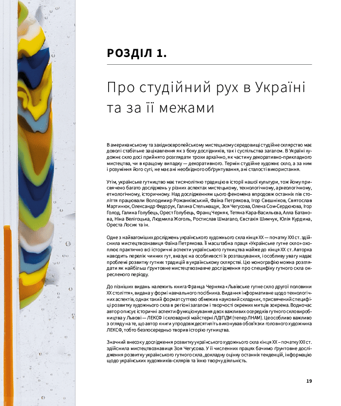 Книга «Студійне скло в Україні» присвячена історії та становленню міжнародного руху студійного скла – унікального явища в мистецтві ХХ століття, що змінило уявлення про скло як матеріал. Автор Михайло Бокотей розповість про шлях від утилітарного й декоративного використання скла до його утвердження як повноцінного образотворчого медіума.Також у книзі розглядається роль піонерів студійного руху – Гарвея Літтлтона, Домініка Лабіно, Ервіна Айша, Андрія Бокотея, Франца Черняка тощо та їхніх послідовників – у формуванні нового мистецького напряму. Окрему увагу приділено українському художньому склу, яке спирається на давні традиції гутництва та розвивалося паралельно зі світовими тенденціями.Видання буде цікаве всім, хто хоче більше дізнатися про українське мистецтво.