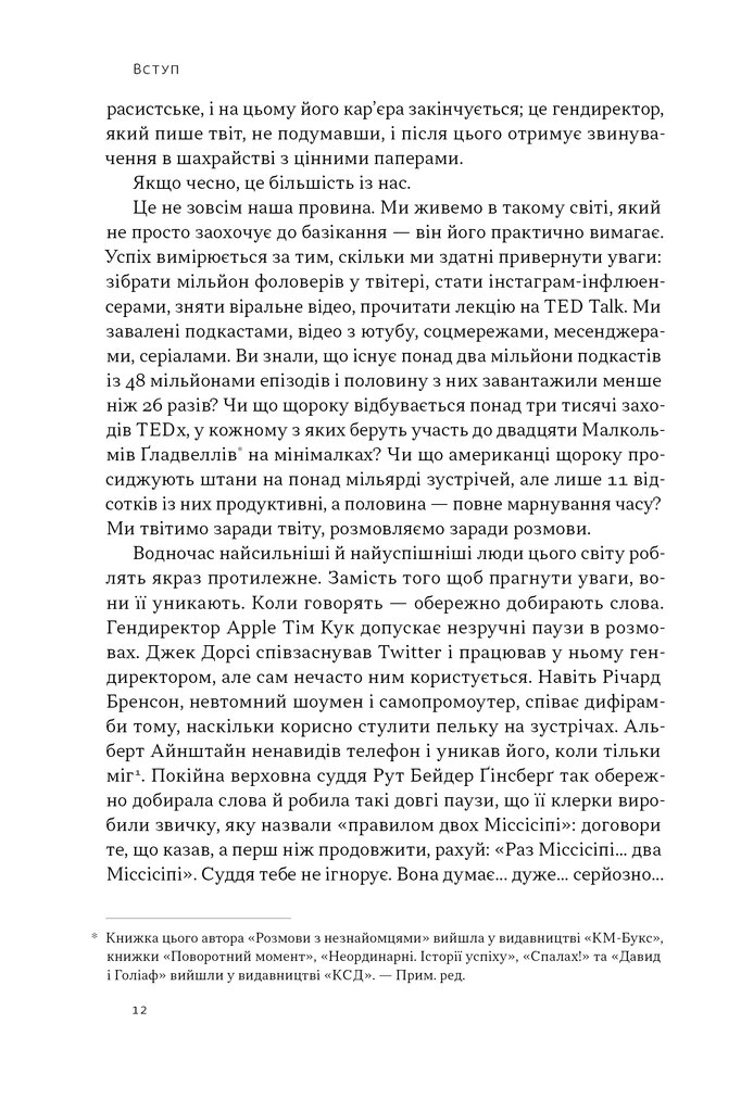 Світ заохочує нас говорити більше, голосніше, частіше. Нас привчають думати, що перемагають ті, за ким останнє слово. Згадайте, скільки часу та нервів ми витрачаємо, коли «в інтернеті хтось неправий».