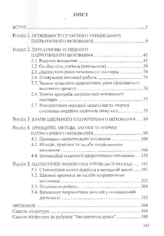 У посібнику здійснено теоретичне обґрунтування сучасного патріотичного виховання школярів України, запропоновано етапність цілеспрямованого виховного впливу, надано рекомендації щодо його реалізації в урочній, позаурочній та позашкільній практиці.