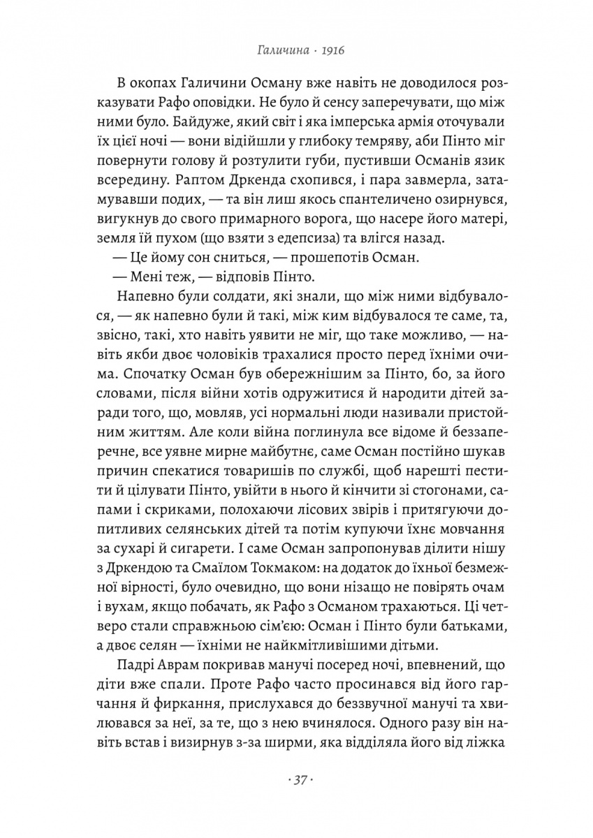 Десь в окопах серед Галичини його фантазії остаточно руйнуються. Війна зовсім не схожа на студентські будні у розпусному Відні, літні прогулянки чи замріяні вечори. Єдине, що тримає Рафаеля на фронті, — любов до свого побратима Османа.