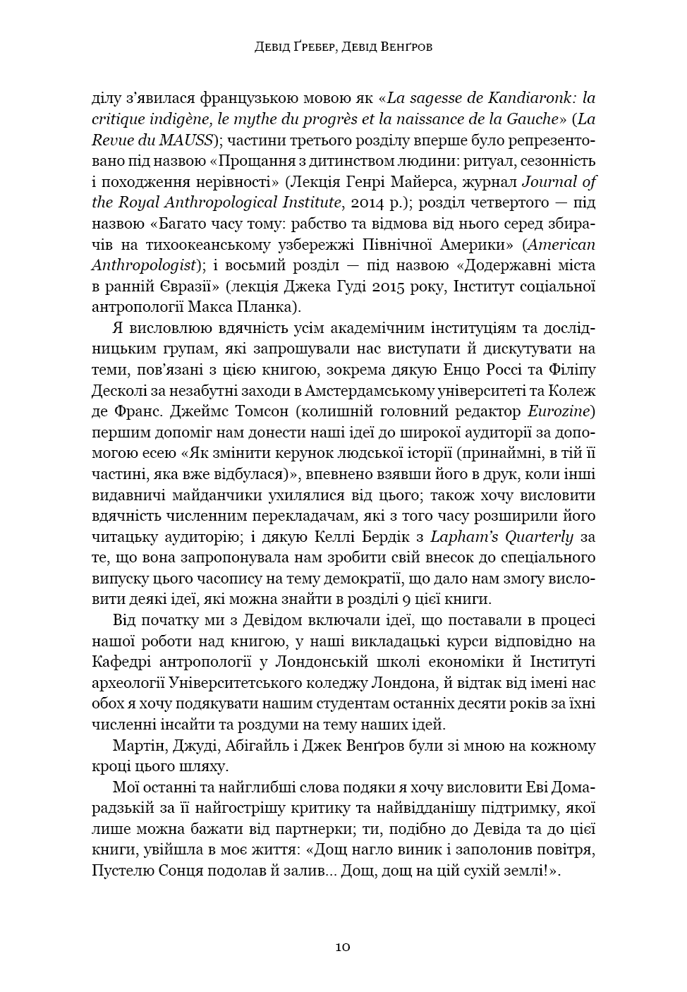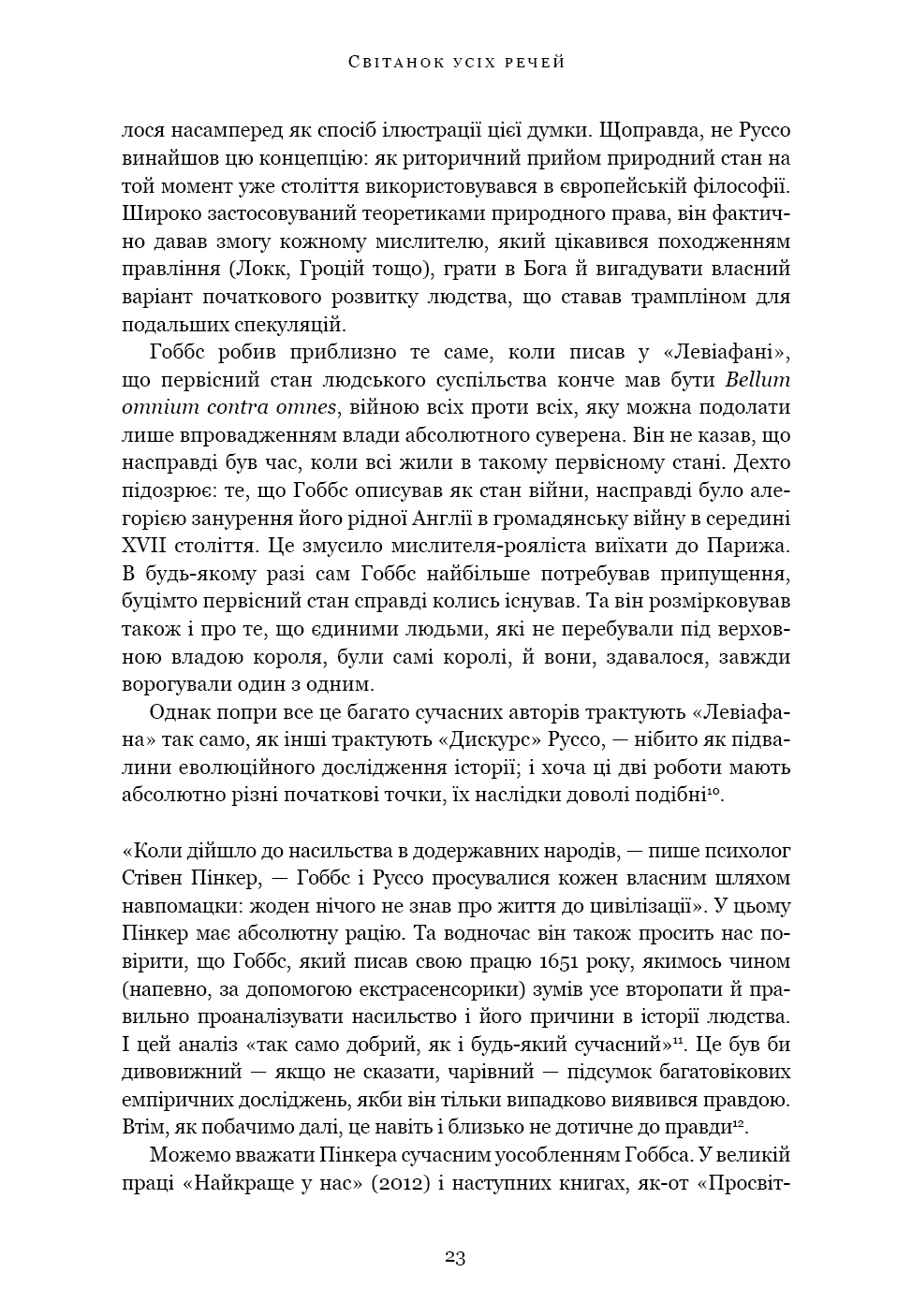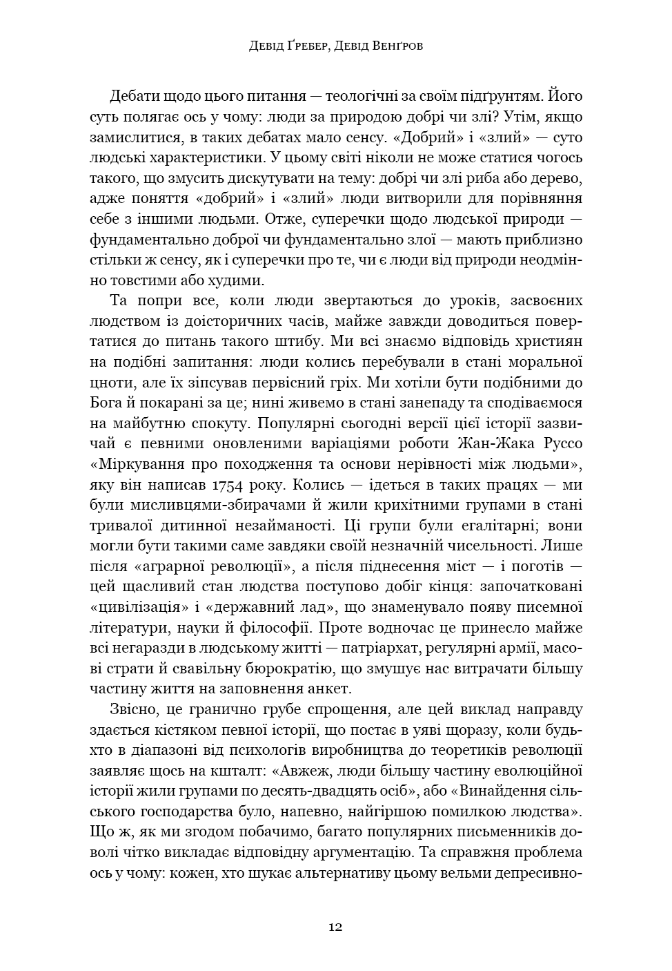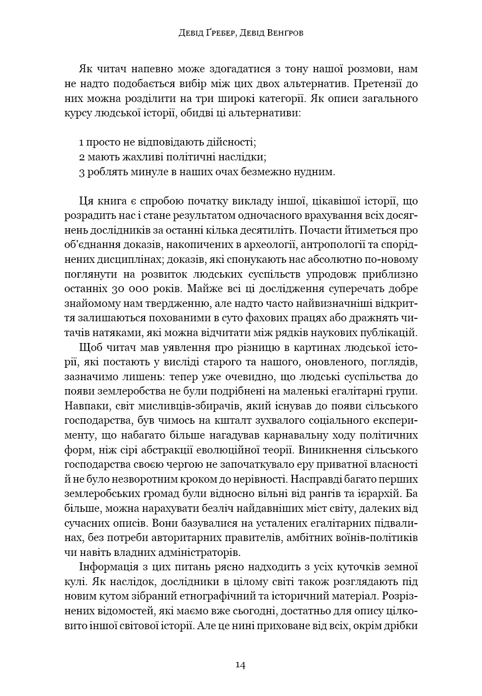 «Світанок усіх речей» — ґрунтовний аналіз досліджень останніх кількох десятиліть, що пропонує кардинально новий погляд на історію людства. Книга кидає виклик нашим найфундаментальнішим уявленням про соціальну еволюцію — від розвитку сільського господарства й міст до походження держави, демократії та нерівності — і відкриває нові можливості для розуміння природи людини. Спираючись на новаторські дослідження в археології та антропології, автори показують, як змінюється історія, коли ми отримуємо змогу скинути концептуальні кайдани й вільно сприймати те, що було насправді.