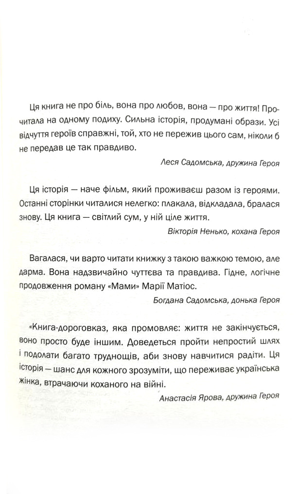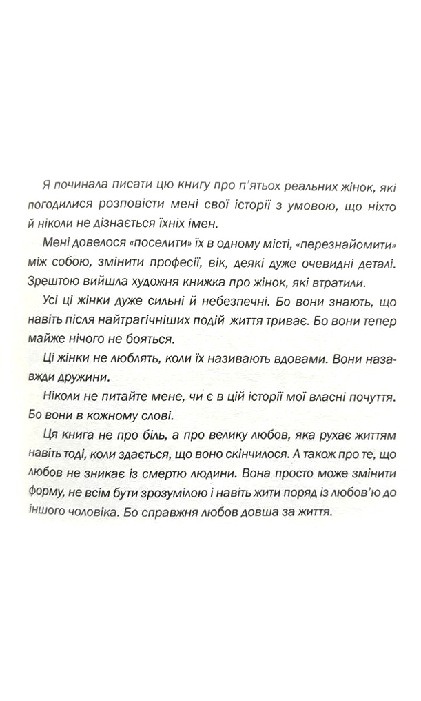 Проте є дещо, що об’єднає усіх цих жінок. В одну мить їхні життя поділяться на "до" і "після". Вдови. Молоді і поважного віку. Таких тисячі. Це звичайні жінки, які ще вчора ходили з вами до однієї крамниці, яких ви зустрічаєте на вулиці, з якими разом працюєте чи стежите за ними в соцмережах.