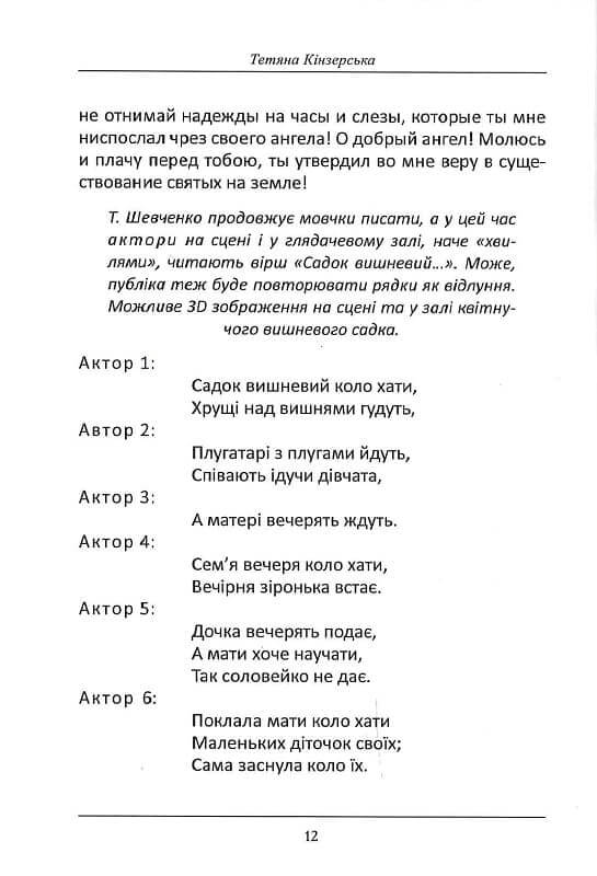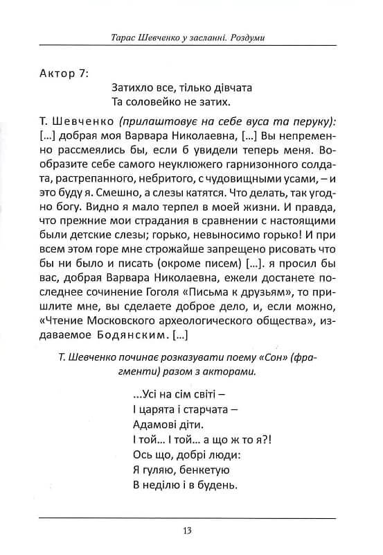 У книжці взятий період життя Т. Г. Шевченка 1847-1857 років. Мета цієї літературно-музичної композиції - через листи поета передати його душевний стан і, одночасно, показати ті поезії, які він у цей час писав. Важкий душевний стан Т. Г., його фізичні страждання й безнадія щодо звільнення з неволі, не зупиняли його боротьби з несправедливістю і свою найгострішу зброю у цій боротьбі, слово, він ніколи не опускав.