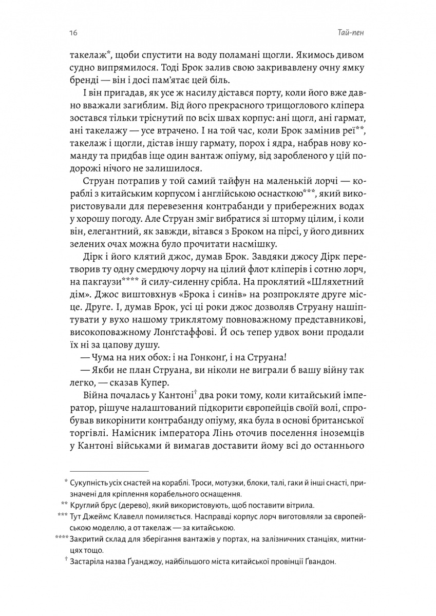 Протягом десятиліть Струан веде безжальну війну зі своїм давнім суперником — Тайлером Броком. Їхнє протистояння — це не просто бізнес, а особиста війна, де кожна угода, союз і навіть кохання — ще один хід у небезпечній грі, де програш означає смерть.