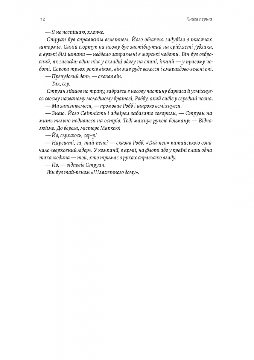 У світі, де імперії зростають на торгівлі, крові й зраді, лише одна людина зуміла піднятися і стати легендою. Дірк Струан — Тай-пен, верховний правитель торгового дому Struan&Company, відомого як «Шляхетний дім» — найбільшої торговельної компанії на Далекому Сході. Він керує не лише флотом, шовком і сріблом, а й долею англійської присутності в Китаї.