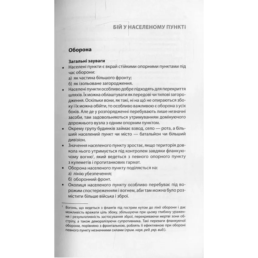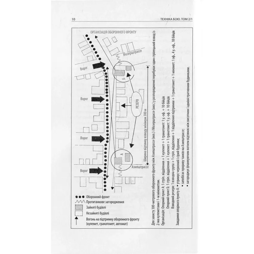 Фундаментальний швейцарський підручник з основ загальновійськового бою від автора «Тотального опору». У ньому детально і доступно описано види техніки сучасного бою і командування військовими підрозділами, розвідки і контрдиверсійної роботи, особливості застосування зброї, будування фортифікаційних споруд та інженерних загороджень, правила організації маршу та розквартирування, постачання війська, санітарної служби, військового вишколу тощо. Професійний, але пристрасний текст військового фахівця і патріота має потужний мотиваційний потенціал, а доповнений рисунками, схемами і таблицями, він може бути легко засвоєний. Призначається для офіцерів, сержантів, рядових Збройних Сил України, а також усіх, хто хоче належно підготуватися до захисту своєї країни від агресії ворога та збільшити свої шанси на виживання у бою. У цій частині розкриваються основи ведення бойових дій у населеному пункті та лісі, а також особливості боротьби за фортифікаційні споруди.