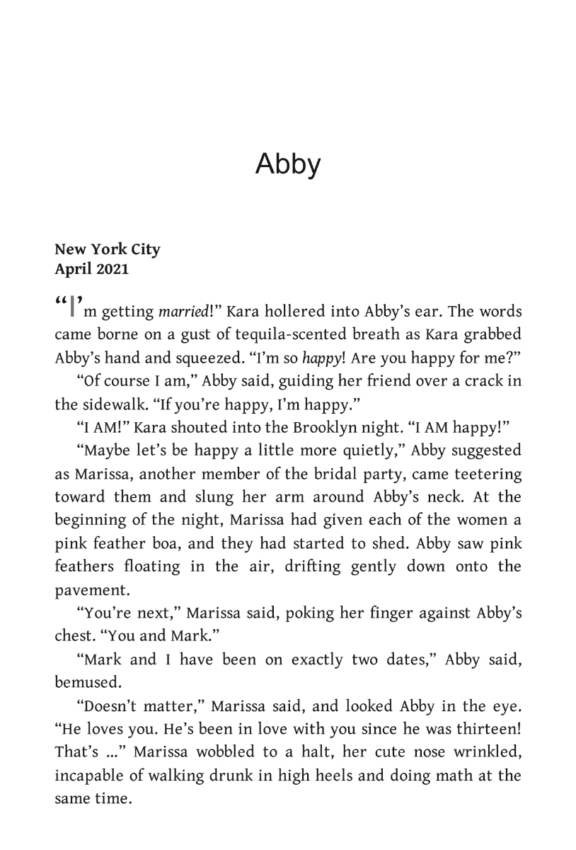 Thirty-four-year-old Abby Stern has made it to a happy place, with good friends, her bike, and her bike club in Philadelphia. She's at peace with her plus-size body - at least, most of the time - and she's on track to marry her childhood sweetheart. Abby and Mark met at the weight-loss camp Abby's perpetually-dieting mother, Eileen, forced her daughter to attend. Fifteen years later, when Abby reconnects with a half-his-size Mark, and finds out that he still adores her, it feels like fate.