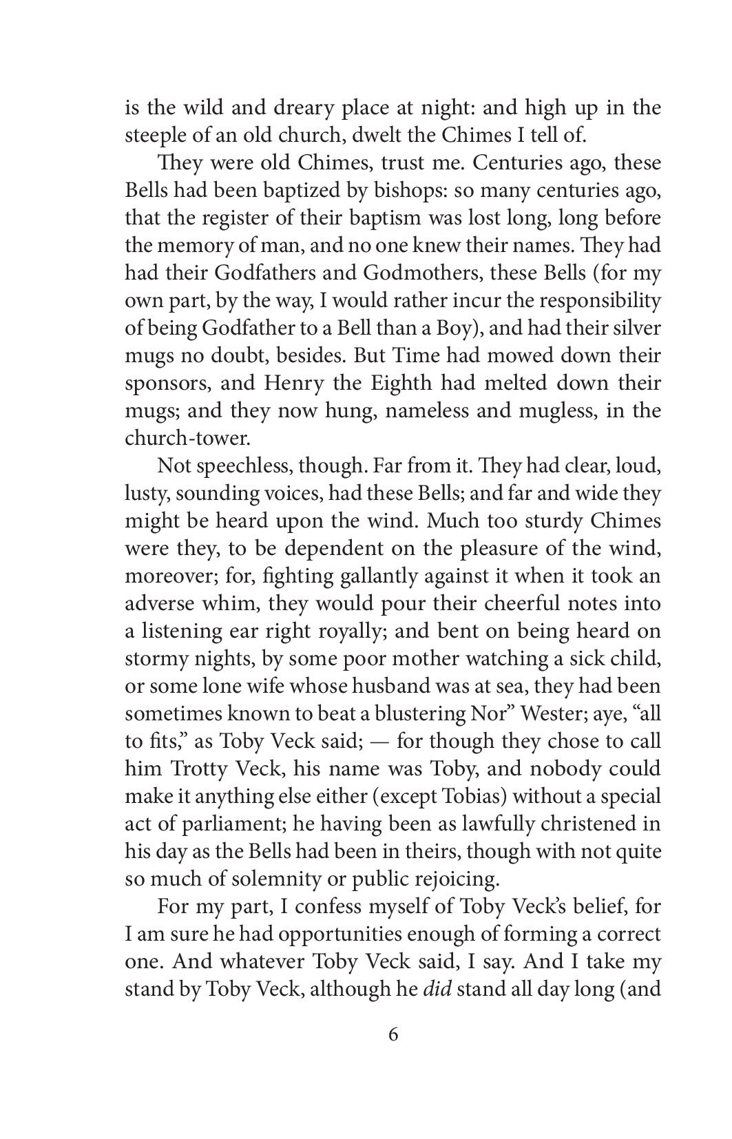 The novel «The Chimes» by the Englishman Charles Dickens (1812—1870) belongs to the series of «Christmas stories». After talking to the judge, Toby begins to believe that all the poor are bad from birth. However, the spirits of church bells with the help of magic change Toby himself as well as the course of events.