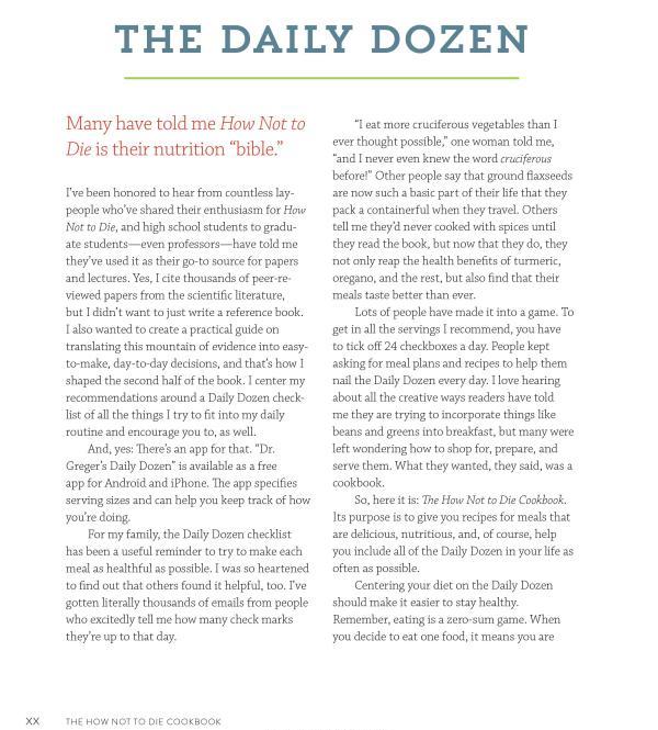 From the author of the global bestseller «How Not To Die» comes «The How Not To Die Cookbook» — a lavish, beautifully illustrated collection of delicious recipes based on the groundbreaking nutritional science of the original book. Dr Michael Greger, founder of the wildly popular website «NutritionFacts», takes his comprehensive, lifesaving science into the kitchen. Why suffer from disease and ill health when the right food is proven to keep you healthy, and without the side effects of drugs? We can avoid heart disease, cancer and our other biggest killers if we use food as medicine, and «The How Not To Die Cookbook» offers a sustainable and delicious guide to preparing and eating the foods that will prevent and reverse fatal diseases. Featuring over 100 easy-to-follow, beautifully photographed plant-based recipes, with plenty of recipes suitable for vegetarians and vegans, «The How Not To Die Cookbook» merges cutting-edge science with everyday ingredients from the supermarket to help you and your family eat your way to better health and a longer life.