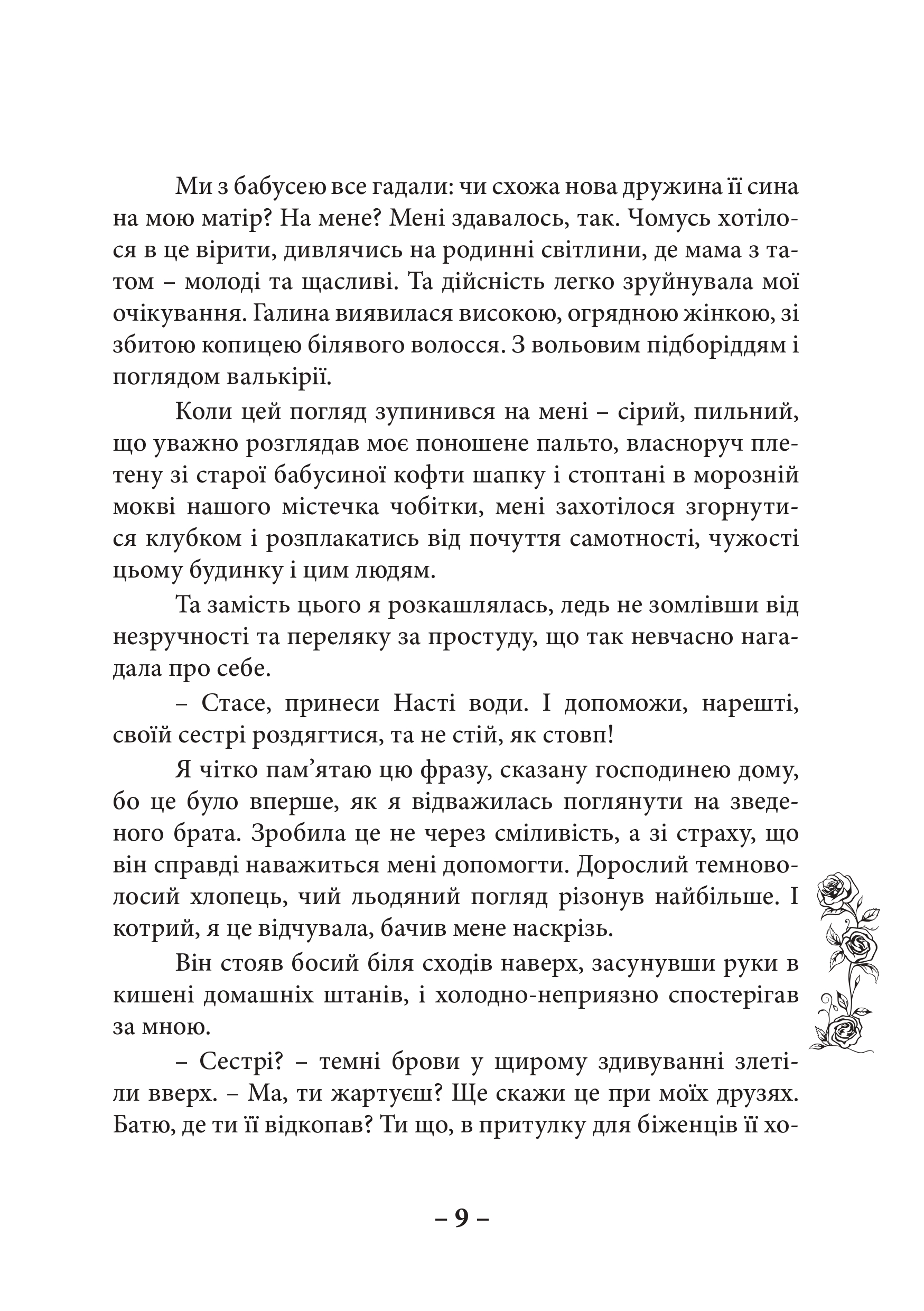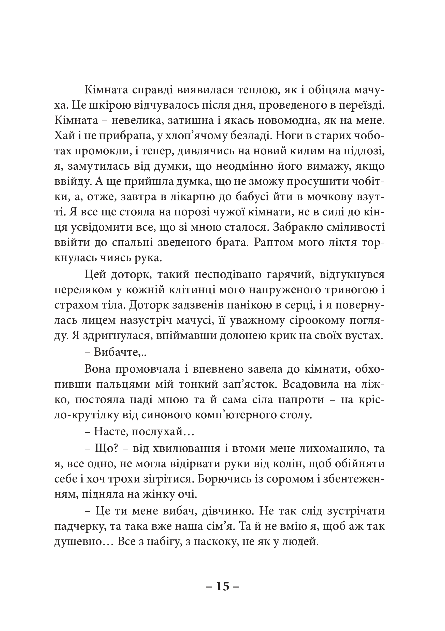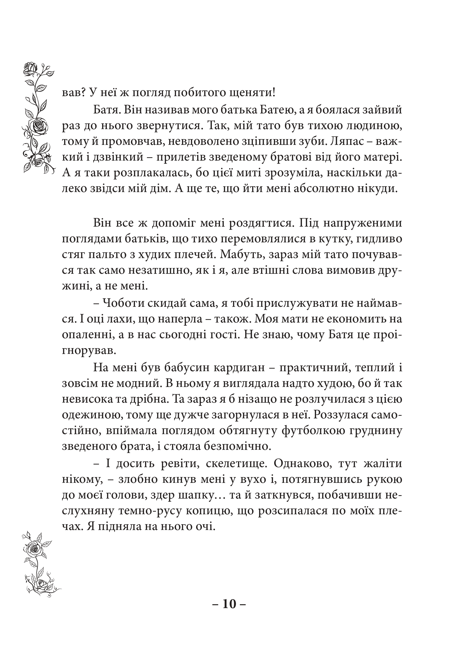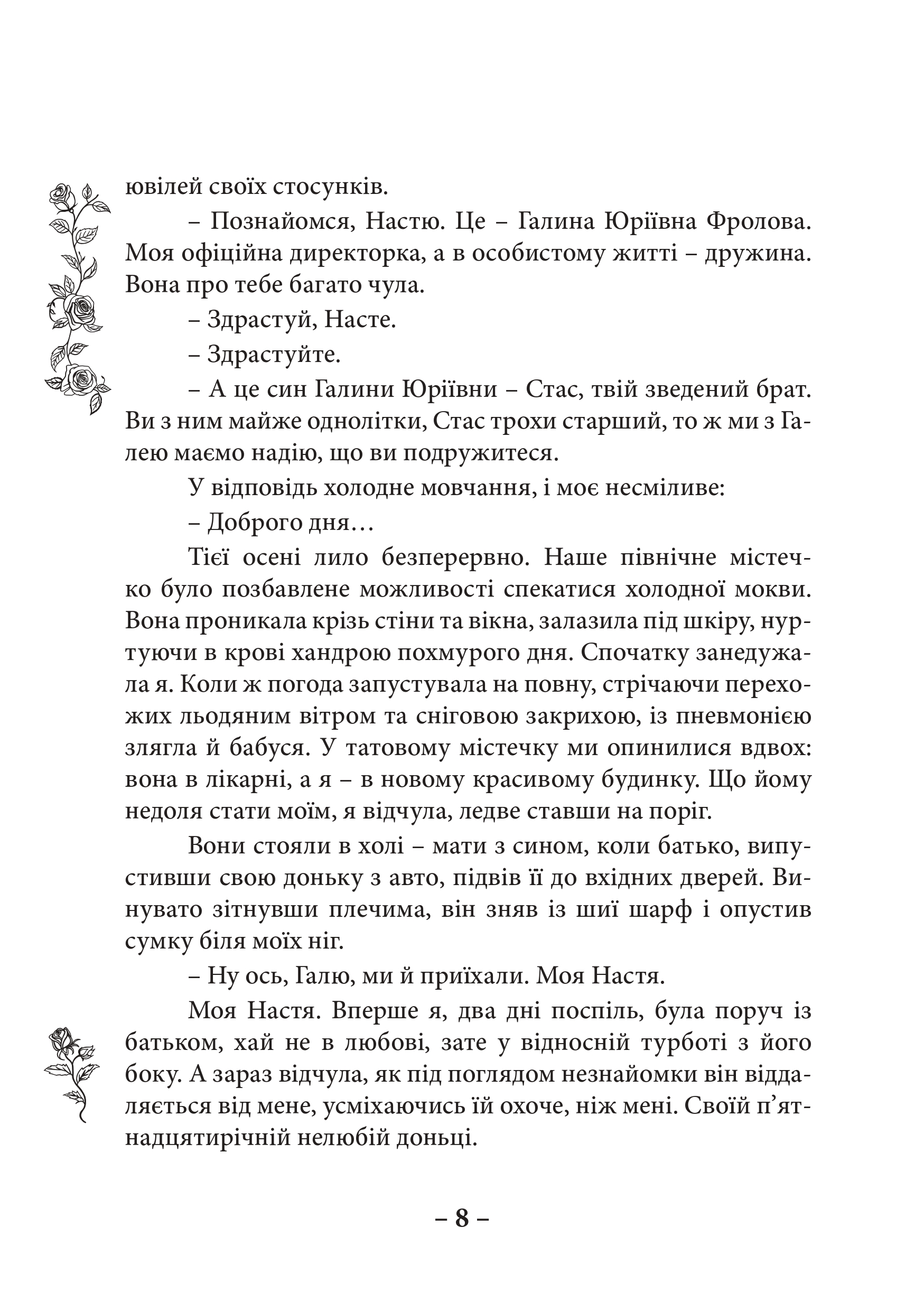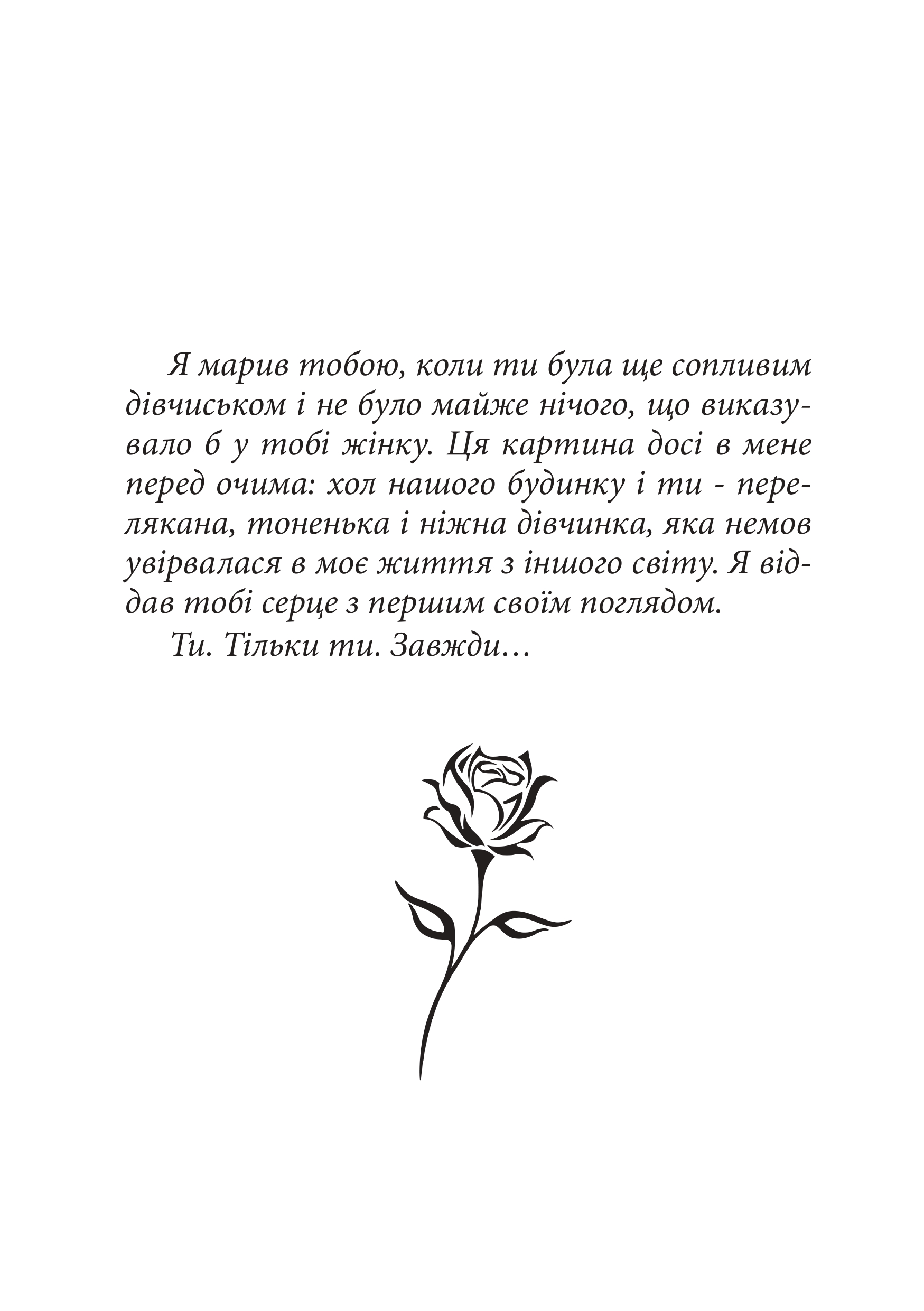 Мій зведений брат. У тебе є все: дім, сімʼя, батьки... Я нічого не просила й ні на що не сподівалася. Мені було затишно в своєму світі, допоки в ньому не зʼявився ти. Але ти проник під шкіру й залишив рани. Маю надію, що одного разу я забуду тебе.