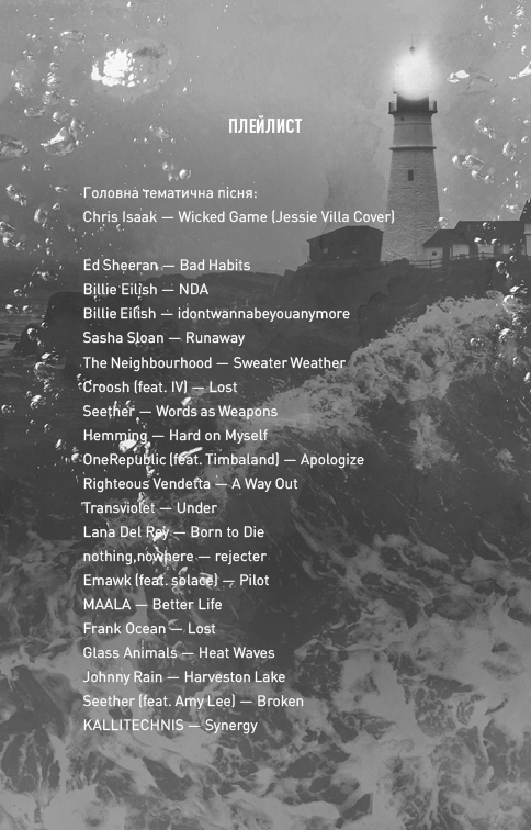 Тепер я дівчина, яка шукає притулку в напівзруйнованому маяку з чоловіком, який ненавидить мене майже так само сильно, як і прагне мене. Він хоче завдати мені болю, але старий доглядач покинутого острова може мати набагато зловісніші наміри.