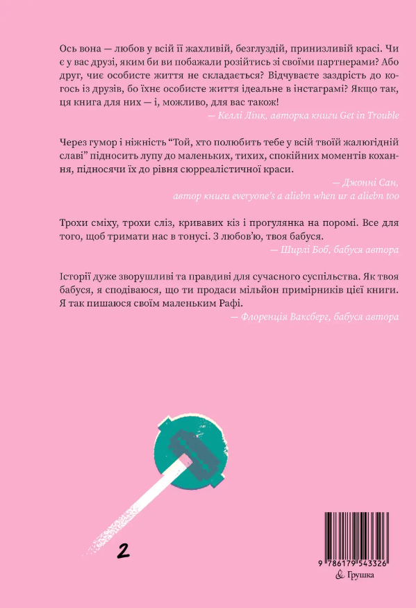 І ще п’ятнадцять історій, де гірка іронія стає гострою, наче бритва, розтинаючи вузли людських стосунків, препаруючи нашу крихкість, бажання бути коханими, а також наші пошуки того, що висвітлює тіні всередині нас.
