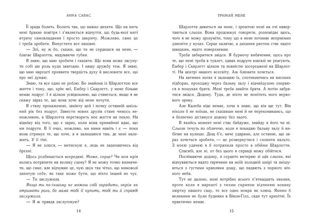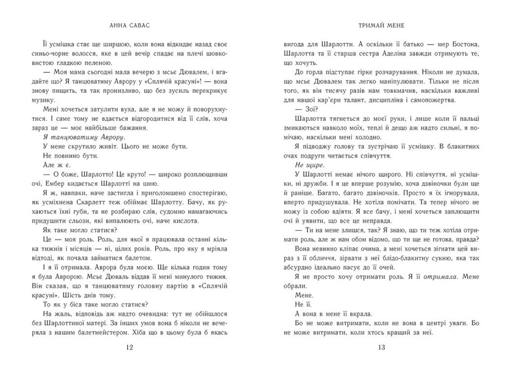 Зої завжди мріяла вступити у престижну школу балету, та цей шанс змушує її зустрітися зі своїм минулим. Джейс — хлопець, якого вона рік тому покинула без пояснень, тепер її партнер у танцях. Сильний, рішучий, ідеальний у всьому, окрім стриманості, Джейс досі кохає Зої, але приховує це за образою. Зої ж бореться зі своїм страхом перед дотиками, від якого її рятує лише присутність Джейса. Чи зможуть вони знову відкрити одне одному серце та врешті довіритися почуттям, які все ще вирують між ними.Чуттєвий роман від Анни Савас про пристрасть, кохання, любов до балету, а також пошук себе і боротьбу за власні мрії.