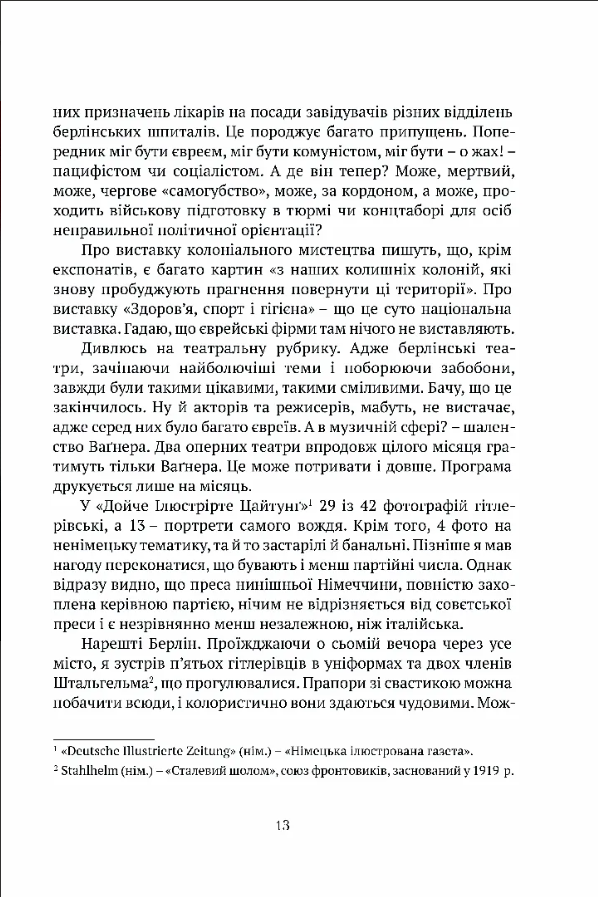 Сьогодні, коли ця книжка йде до українського читача, не можемо не сказати про те, як боляче резонує мало не кожне спостереження Антонія Собанського з гітлерівської Німеччини 30-х із тим, що відбувається в путінській Росії. Зрештою, і світ, здається, мало змінився – знову з диктатором шукають домовленостей, порозуміння, намагаються «зберегти йому обличчя», очікують, що він «нарешті все зрозуміє», не усвідомлюючи, що це може потягнути за собою катастрофу, значно страшнішу за Другу світову війну.