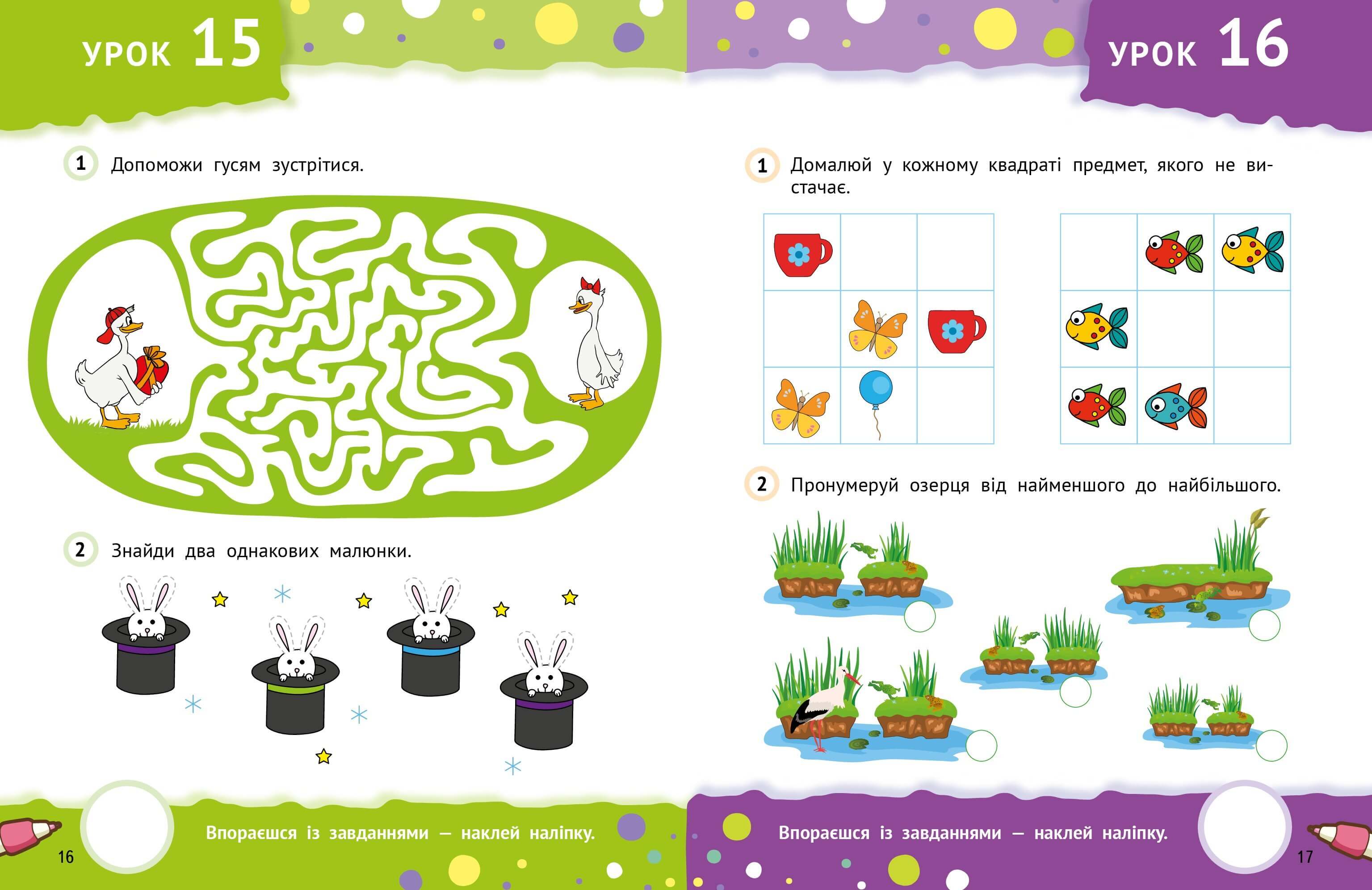 А ще тямуще дошкільнятко зможе самостійно оцінити результати своєї роботи: виконавши завдання — наклеїть наліпку!