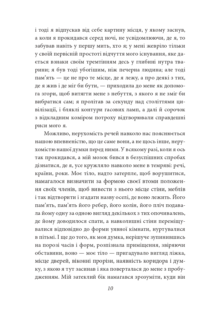 Герой роману — хлопчик Марсель, у житті якого є багато фактів із біографії письменника: рання хвороба, любов до матері, атмосфера аристократичної вишуканості та артистизму в домі. Дитяча уява відтворює приміський будинок у Комбре, де живуть батьки, бабуся, тітонька Леонія, декілька служниць… Головне і другорядне, сучасність і спогади, події та почуття — все переплуталось у романі Пруста. Автор прагнув створити епопею не зовнішніх подій, а внутрішнього світу людини, свідомість якої складається з чуттєвих рухів і миттєвих вражень. Саме увага до звуків, смаків, кольорів, запахів, які пробуджують забуті враження, споріднює твір з естетикою імпресіонізму.