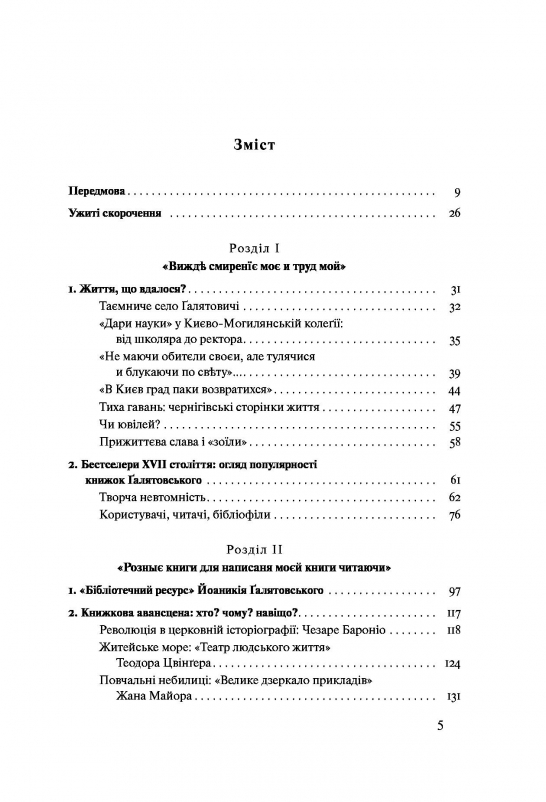 Книжку присвячено найпопулярнішому свого часу церковному письменникові другої половини ХVІІ століття Йоаникію Ґалятовському. Але йдеться тут не лише про біографію і твори знаного могилянського книжника, тлумача західних уявлень про Бога й світ для тодішнього православного християнина. Авторка унаочнює процес становлення новочасного «інтелектуального повсякдення» в Україні та показує універсальний характер і, водночас, історичну специфіку тих прикмет «самості», що виразно оприявнились у барокову добу «київської відкритості» та «витворили обличчя нової української культури». Непересічна творча активність о. Йоаникія слугує вдячним тлом для реконструкції загальнішого типу ранньомодерного інтелектуала-богослова києво-могилянського кола, і для цього дослідниця залучає вельми розмаїтий і витончений методологічний інструментарій релігійної антропології, історії уявлень та ідей, історії читання та культурних рецепцій тощо.