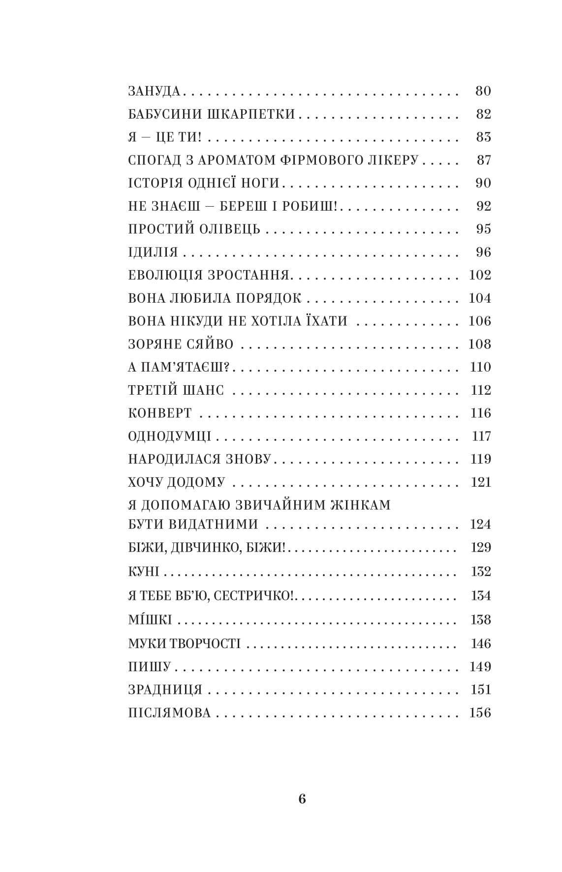 До уваги читачів — наступна книга серії української сучасної літератури «СередСвоїх». Це збірка малої прози української письменниці Олесі Лужецької, авторки дитячої книги «Чимчикун. Історія країни Надобраніч».