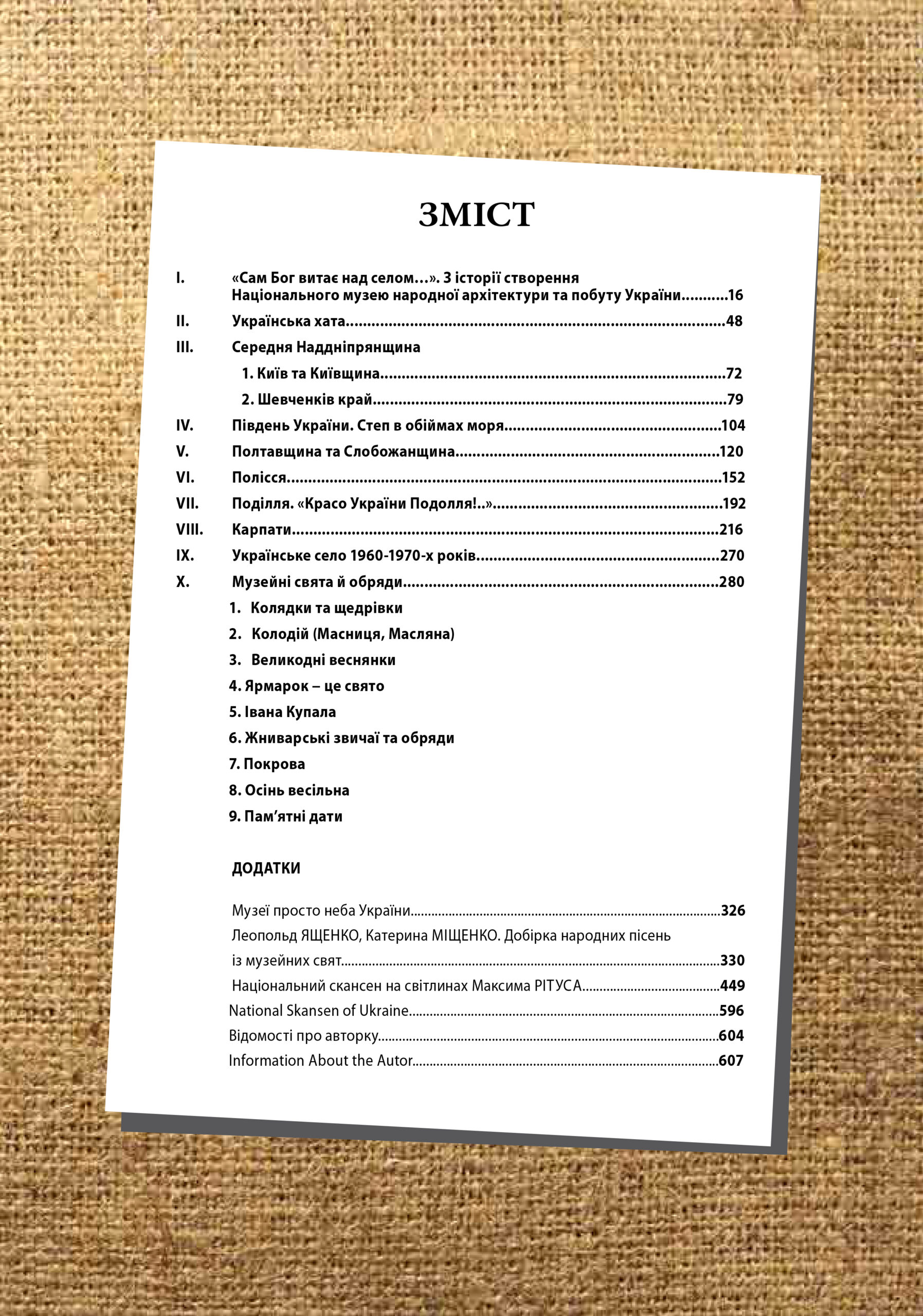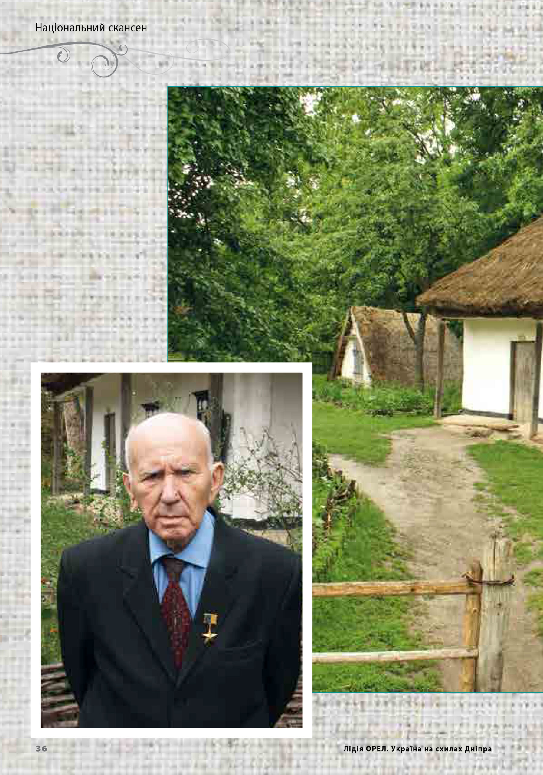 Книга Заслуженого працівника культури України Лідії ОРЕЛ «Україна на схилах Дніпра» містить відомості з історії створення Національного музею народної архітектури та побуту України. Подано короткі характеристики українських історичних, етнічних та етнографічних земель, зокрема тих областей, з яких перевезено до національного скансену архітектурні памʼятки. Видання створено із залученням архівних та експедиційних матеріалів наукових працівників музею. Авторка, одна з чільних фундаторів Національного музею народної архітектури та побуту України, знайомить читачів із типовими традиційними пам'ятками різних історичних земель у їхньому природньому середовищі. Подано відомості про народні обряди та свята. Видання містить також добірку обрядових пісень з нотами, які звучать на музейних святах з 1976 року, інші додатки. Окремий розділ складають твори фотохудожника Максима Рітуса, більд-редактора журналу «Пам'ятки України. Історія та культура».