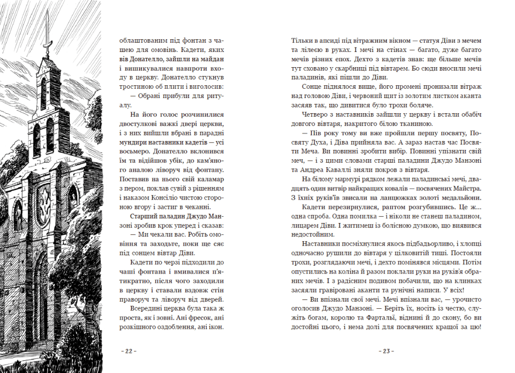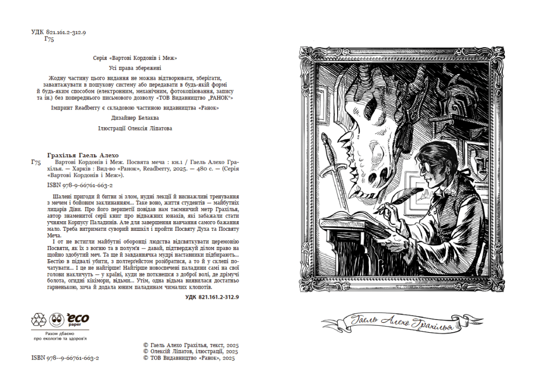 Шалені пригоди й битви зі злом, нудні лекції й виснажливі тренування з мечем і бойовим заклинанням…. Таке воно, життя студентів — майбутніх лицарів Діви. Про його перипетії повідав нам таємничий метр Грахілья, автор знаменитої серії книг про відважних юнаків, які забажали стати учнями Корпусу Паладинів. Але для завершення навчання самого бажання мало. Треба витримати суворий вишкіл і пройти Посвяту Духа та Посвяту Меча. І от не встигли майбутні оборонці людства відсвяткувати церемонію Посвяти, як їх з вогню та в полум'я — давай, підтверджуй ділом право на щойно здобутий меч. Та ще й завданнячка мудрі наставники підбирають… Бестію в підвалі убити, з полтерґейстом розібратися, а то й у склепі початувати…