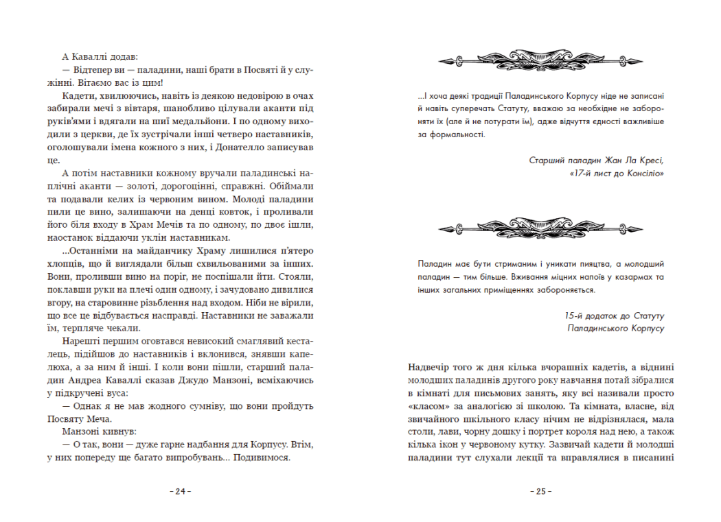 Віддавна в прекрасній Террані людство співіснує з містичним і таємничим, та геть не дружнім. Хитрі фейрі, підступні демони, чорні чаклуни й прибічники темних культів прагнуть знищити людей, розставляючи смертельні пастки, а як ні — бодай утнути якусь капость. Древні спілки відважних чоловіків і жінок, Корпус Паладинів та Колегія Святої Інквізиції, боронятьспокій людства, захищаючи світ від темряви. А на сміливців, які наважилисявступити в ці спілки й присвятити себе боротьбі зі зловісним і лихим, чекає суворе навчання й посвята.Повага їм ічесть… …проте студенти є студенти. Так, вони гідно приймають виклики,але якщо є манюнький шанс уляпатися в історію, — не зволікатимуть. Провести ніч у склепі й зняти закляття з мертвої нареченої; убити бестію в підвалі, допомогти вдові славетного воїна позбутися таємничого обманщика-ґвалтівника? Залюбки! Улаштувати сварку зі студентами-магами й рознести веселий притон — і це до них!Або витягати з халепи спадкоємця титулу й спричинити купу політичних проблем. Пригоди чигають на юних паладинів завжди йусюди. Але чого жалітися? Адже старовинне правило Паладинського Корпусу: «справжній досвід отримуєш в бою».