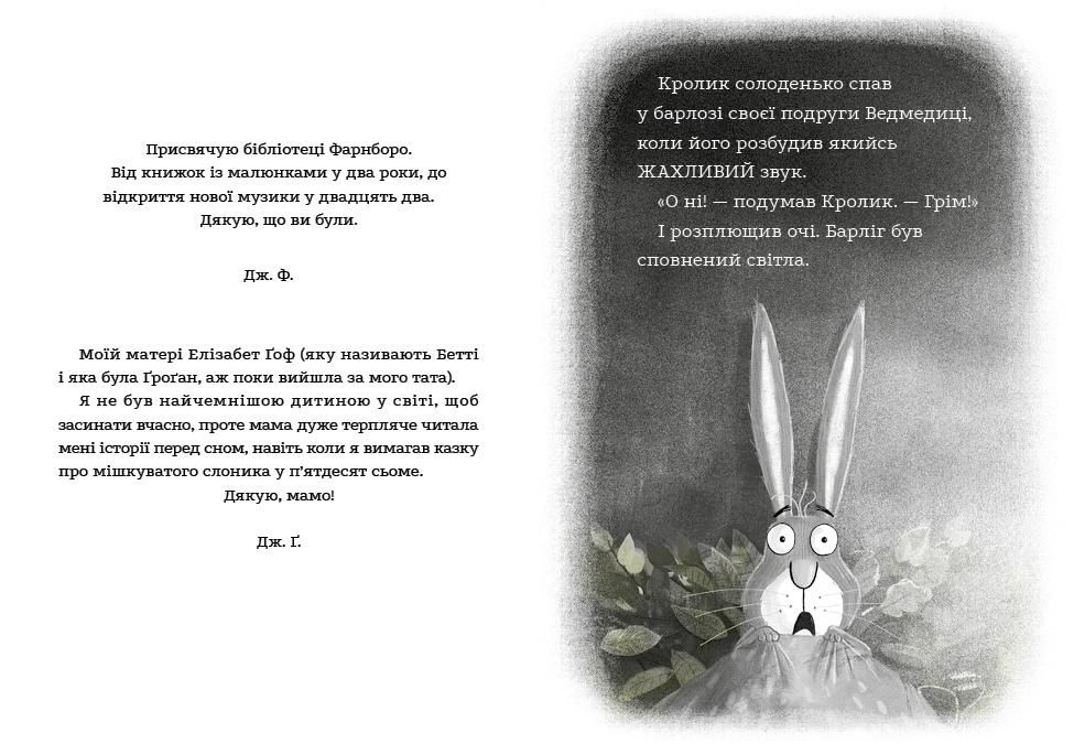 Це глибока за змістом терапевтична казочка про розважливу Ведмедицю і її друга Кролика, в якого завелися таргани у голові. Його дратує ВСЕ. Він БОЖЕВОЛІЄ від стукоту Дятла, тиші, що раптово запала, повільності Черепахи, хропіння подруги у барлозі і власної невдоволеності. Так і хочеться дати копняка! Інколи самому собі… І ситуація зайшла б в глухий кут, якби не Ведмедиця! Чи думали ви колись, що дика звірина може бути психотерапевтом? Ще й ТАКИМ? Саме подруга навчить Кролика управляти емоціями. Так-так, ця маленька книга — це не просто цікавий текст, красиві картинки, виразні персонажі, вона — практикум з підвищення рівня емоційного інтелекту. І в цьому її особлива цінність!