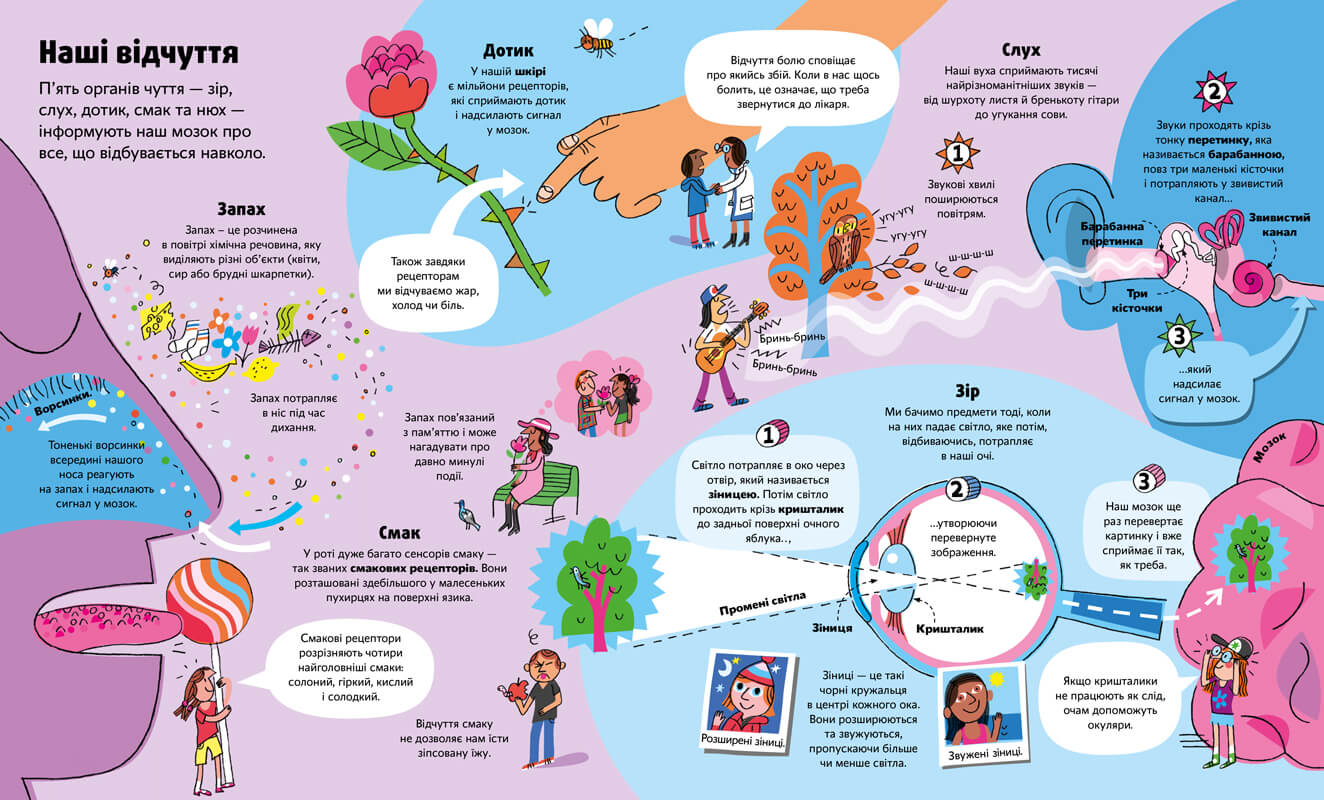 Наприклад, чи відомо вам, яка половина серця сильніша: ліва чи права? Як працює наш зір? А слух? Скільки днів організм перетравлюватиме важку їжу? Завдяки Великій книжці можна дізнатися багато корисного про дивовижно складний та злагоджений механізм — тіло людини!