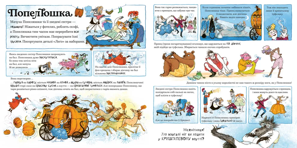 Жив собі Великий Сірий Вовк, який не вірив у всілякі казкові нісенітниці. Як-от чи справді могла Попелюшка танцювати у кришталевих туфельках? І чому тільки у неї була така нога, щоб влізти в таку туфлю? Або ж чи так легко дмухнути і зруйнувати солом’яний будиночок? Не кажучи вже про те, що вовк просто НЕ МОЖЕ проковтнути бабусю цілком, хіба перетвориться на якогось вовкопітона.